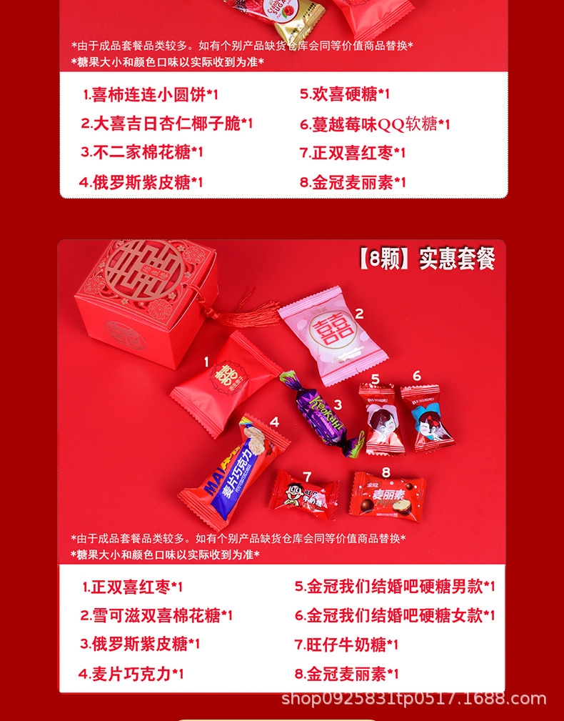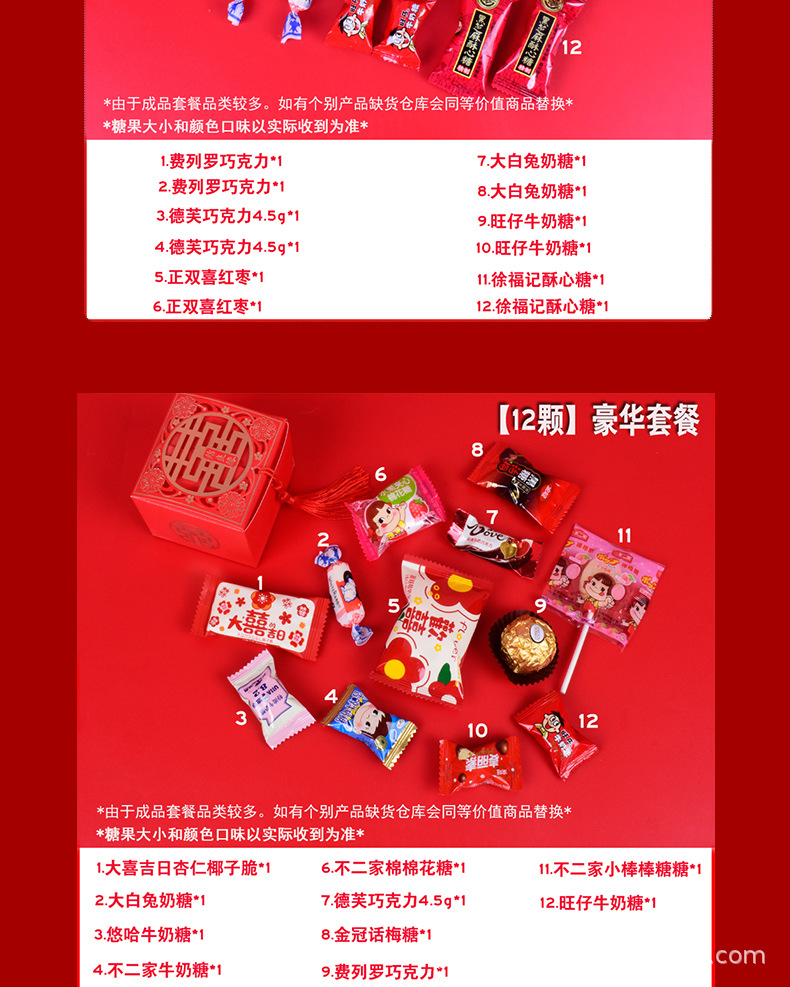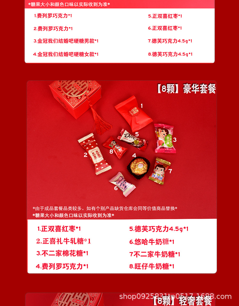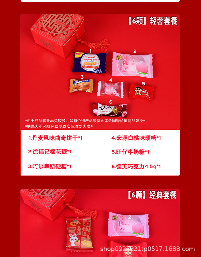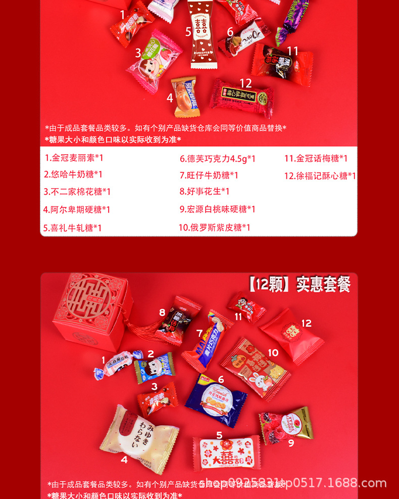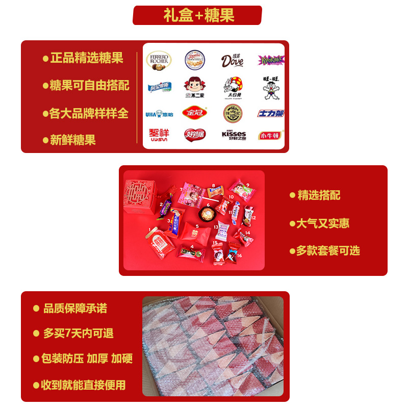 結婚喜糖完成品含糖礼箱中国風結婚式手提げ袋混合チョコレート含糖糖箱包