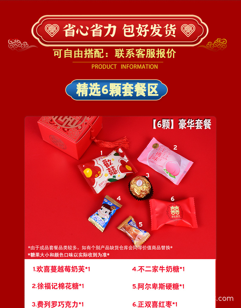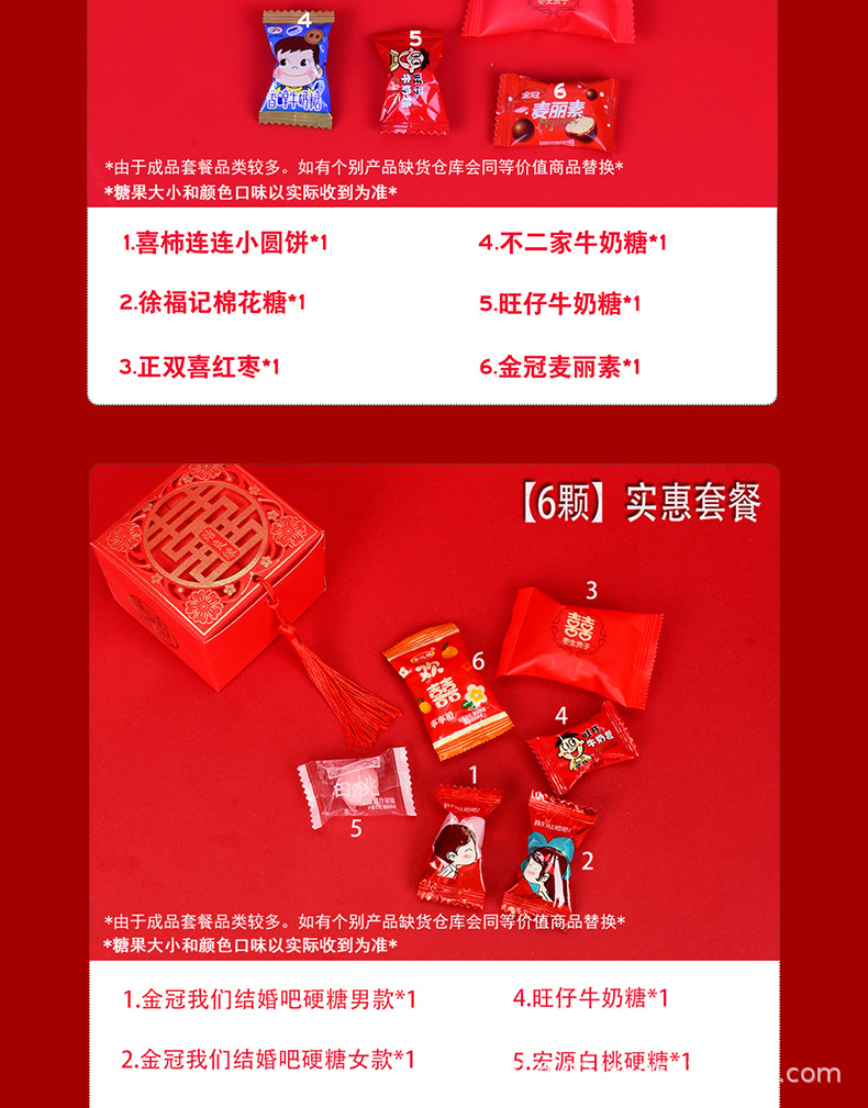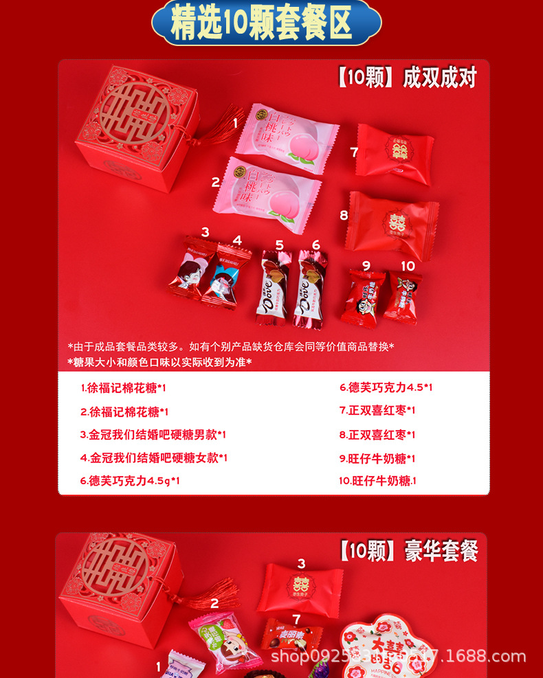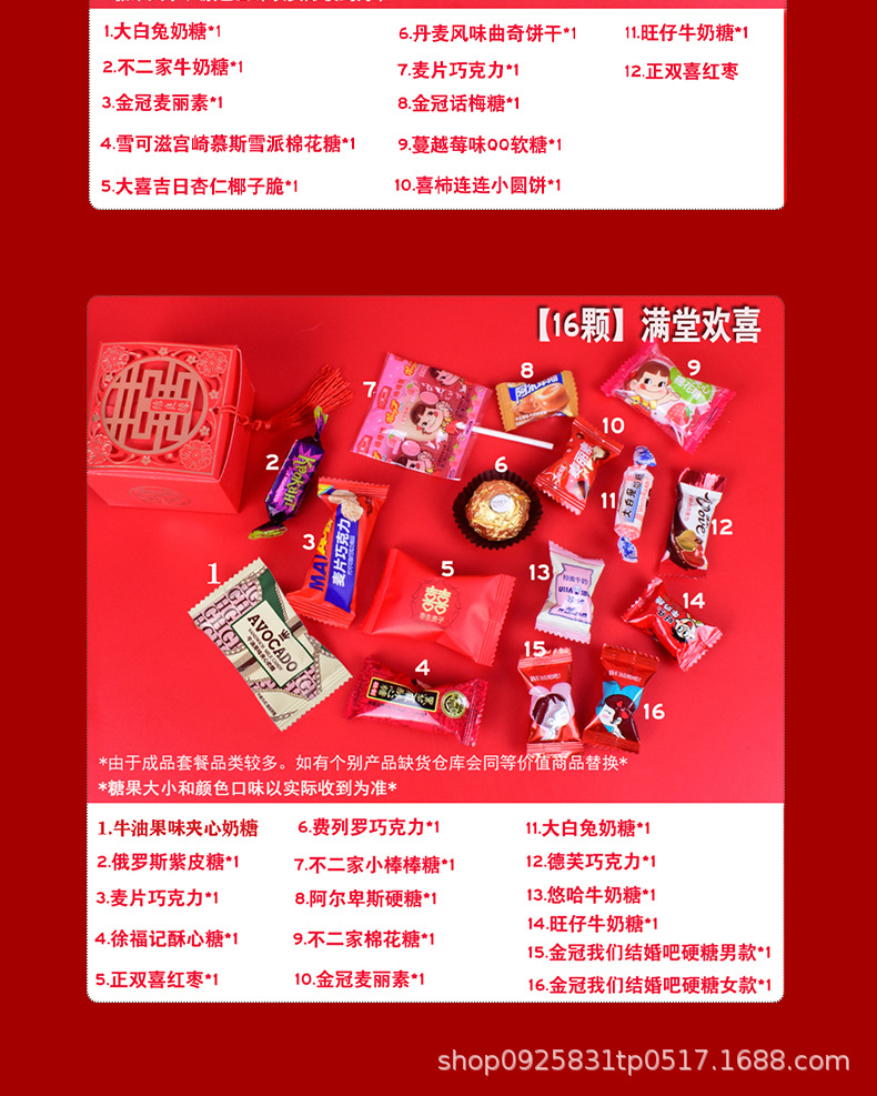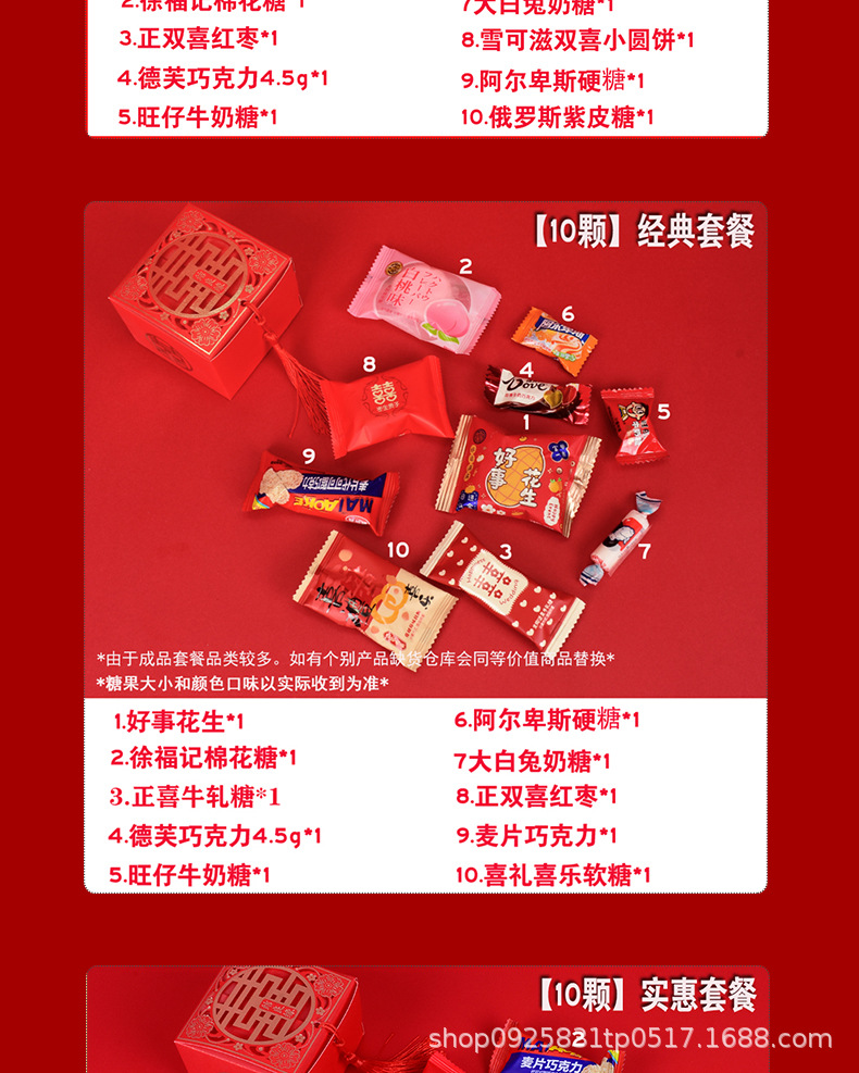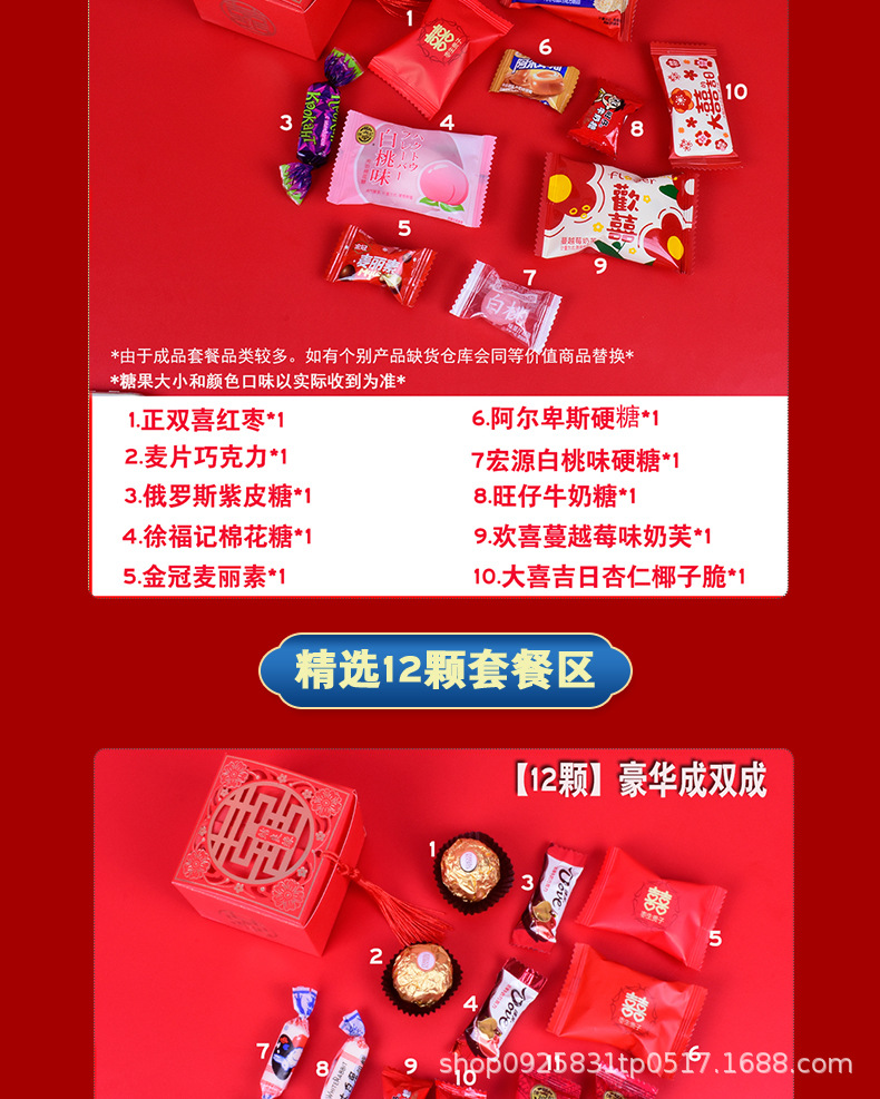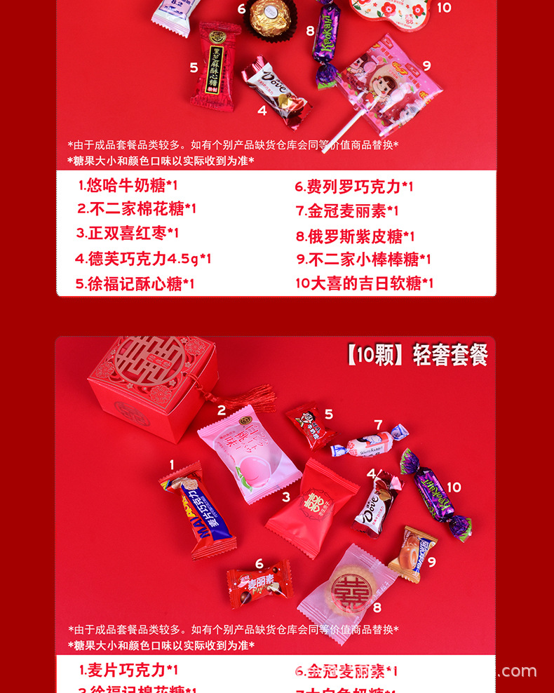 結婚喜糖完成品含糖礼箱中国風結婚式手提げ袋混合チョコレート含糖糖箱包