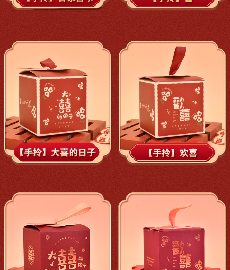 結婚式のお菓子ギフトボックス、キャンディボックス入り、婚約・結婚式用、特製お菓子、記念品、持ち運び用「囍」