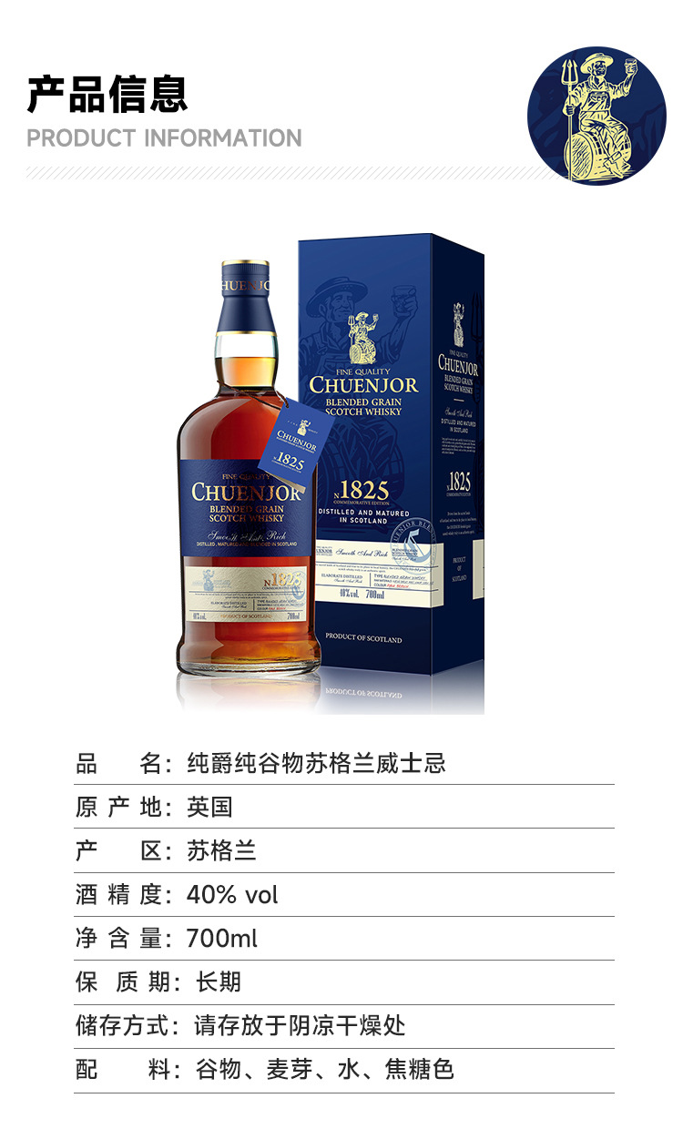 梱包仕様 ピュアグレイン ウイスキー 1825 限定版 シングルボトル 700ml