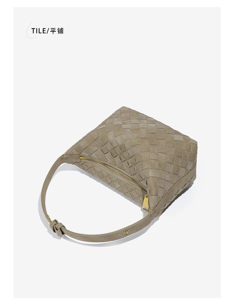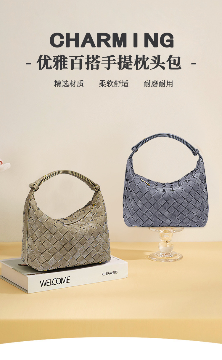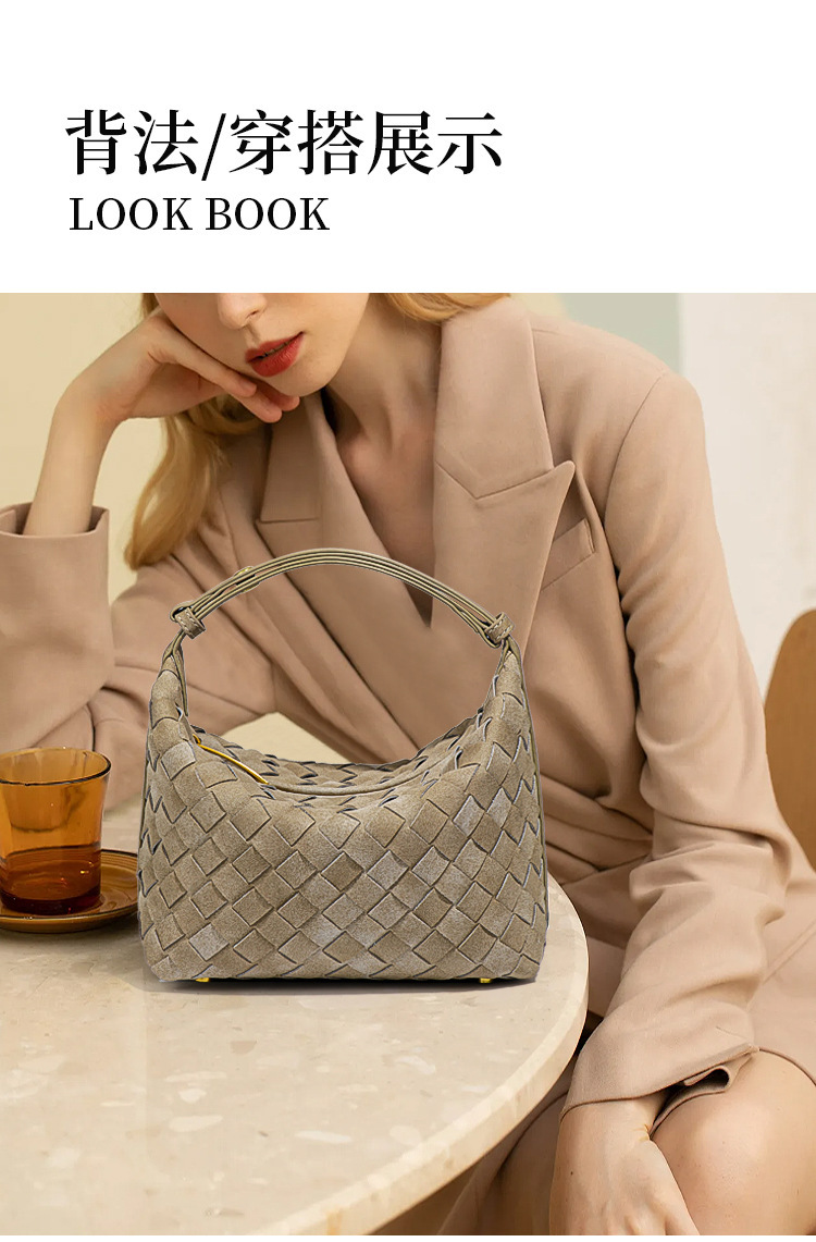 葆碟嘉2025磨砂手工编织手拎包高品质时尚百搭手提包单肩腋下女包