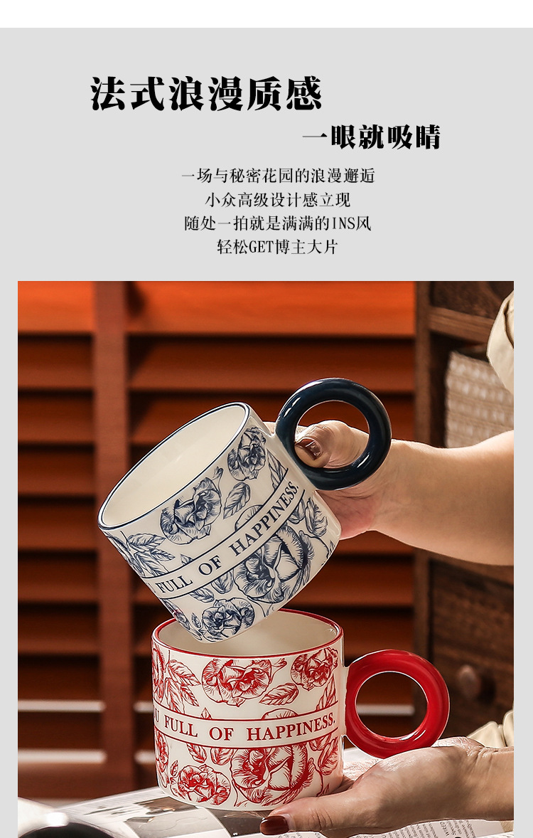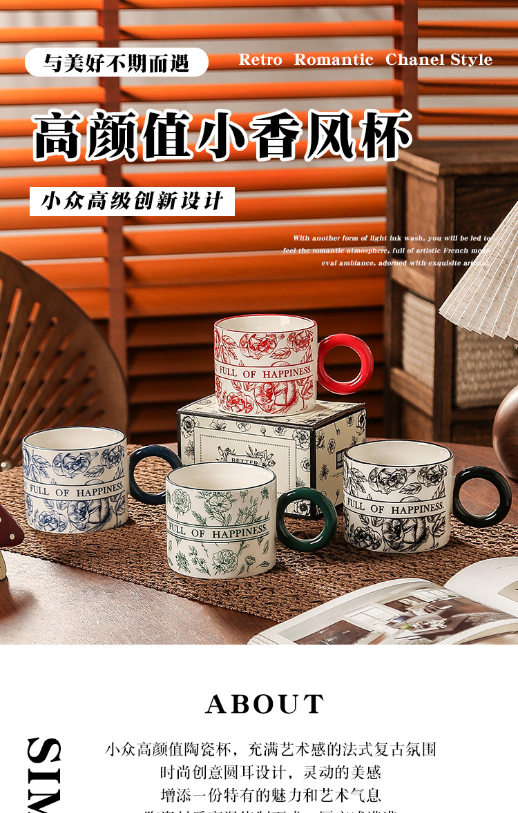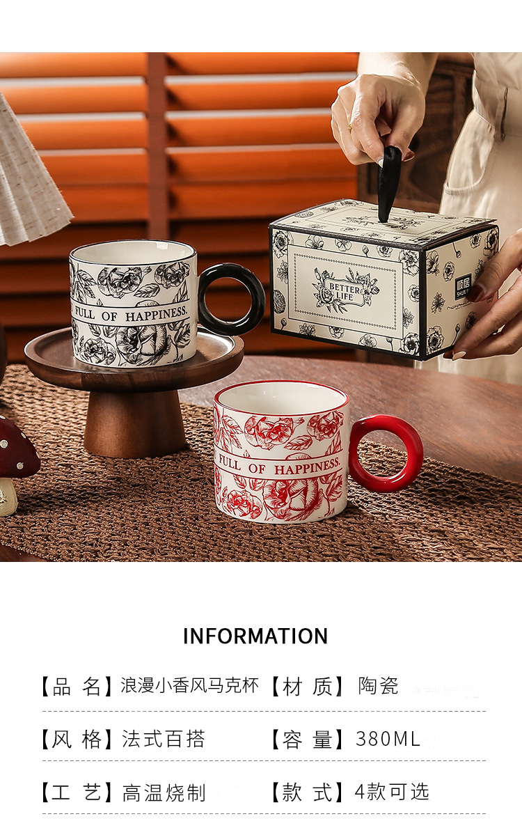 包郵便高颜値小香風陶磁器水杯フランス風ロマンチックマグカップレトロコーヒーカップカップカップカップギフトカップ