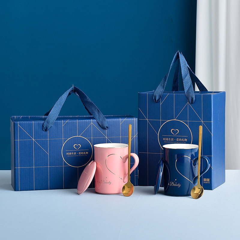 シンプルな愛のカップルのカップボックスセラミックカップ蓋付きマグカップオフィス家庭用お土産カップ卸売り