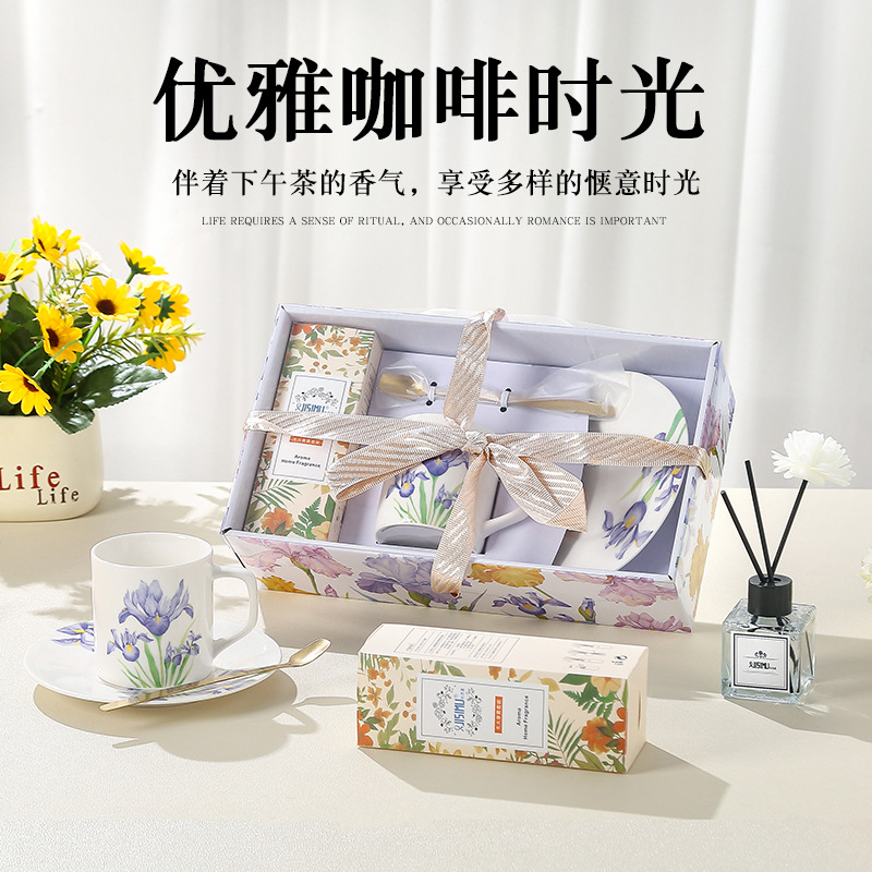 ルアン尾花コーヒーカップセット高颜値陶磁器ギフトカップ精致午後カップ香薫ギフトボックスロゴ