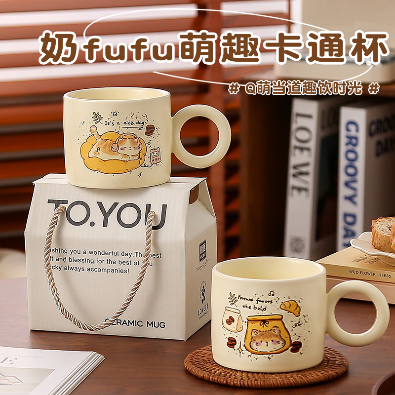 ミルクfufu漫画陶磁器カップ家庭用萌え趣味子猫大ハンドルカップカップカップカップカップマグカップ朝食カップコーヒーカップ