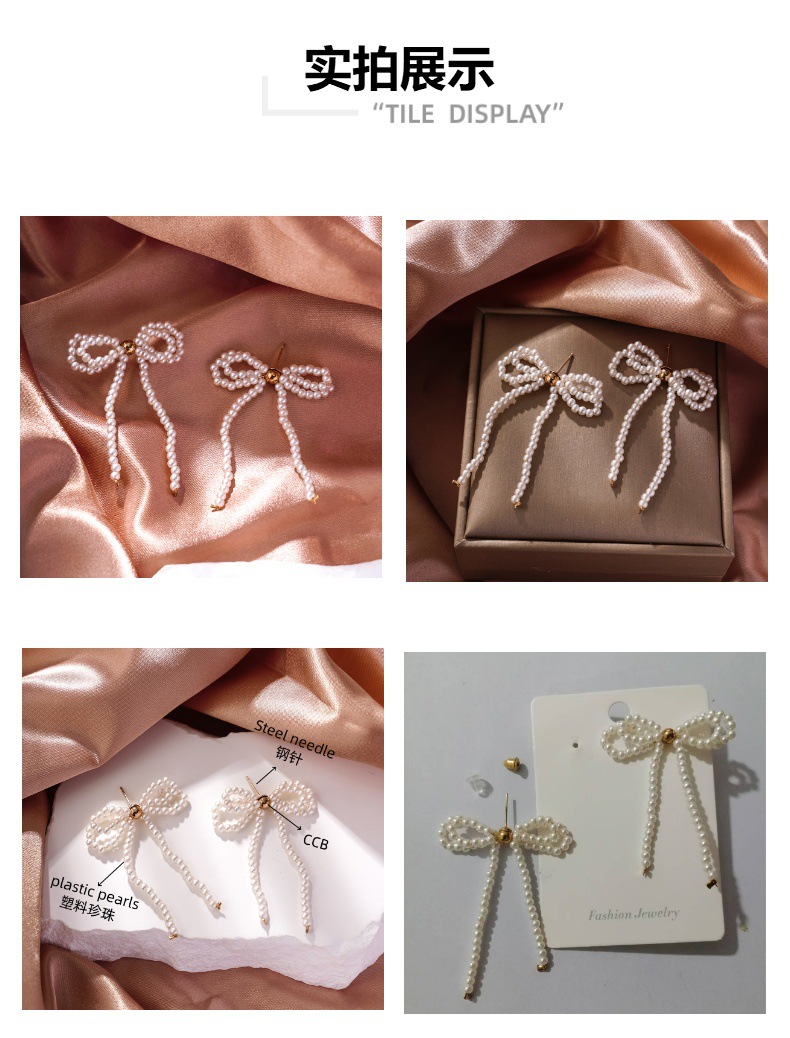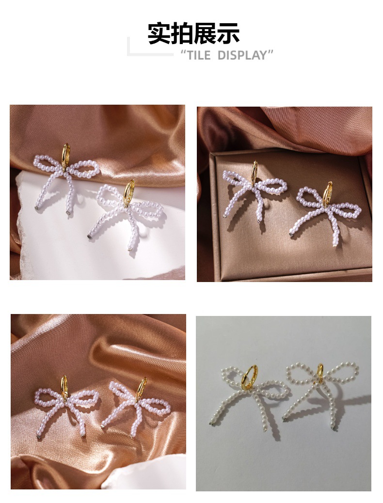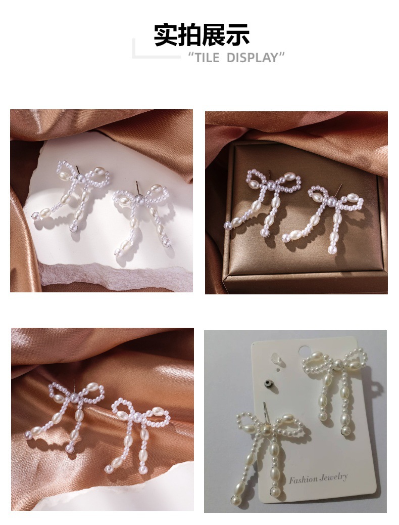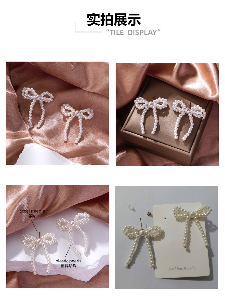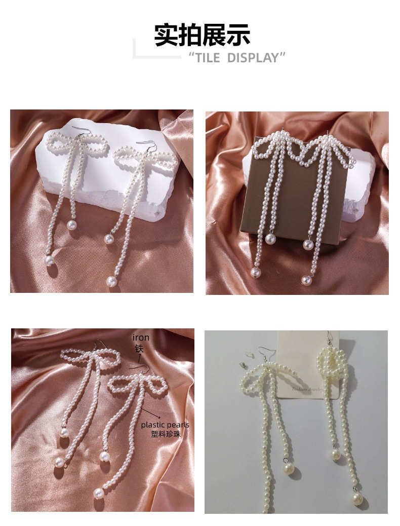 欧米のレトロなins風の蝶結びは真珠のフリンジのピアスの女性のシンプルなイヤリングのbowearingをまねます。
