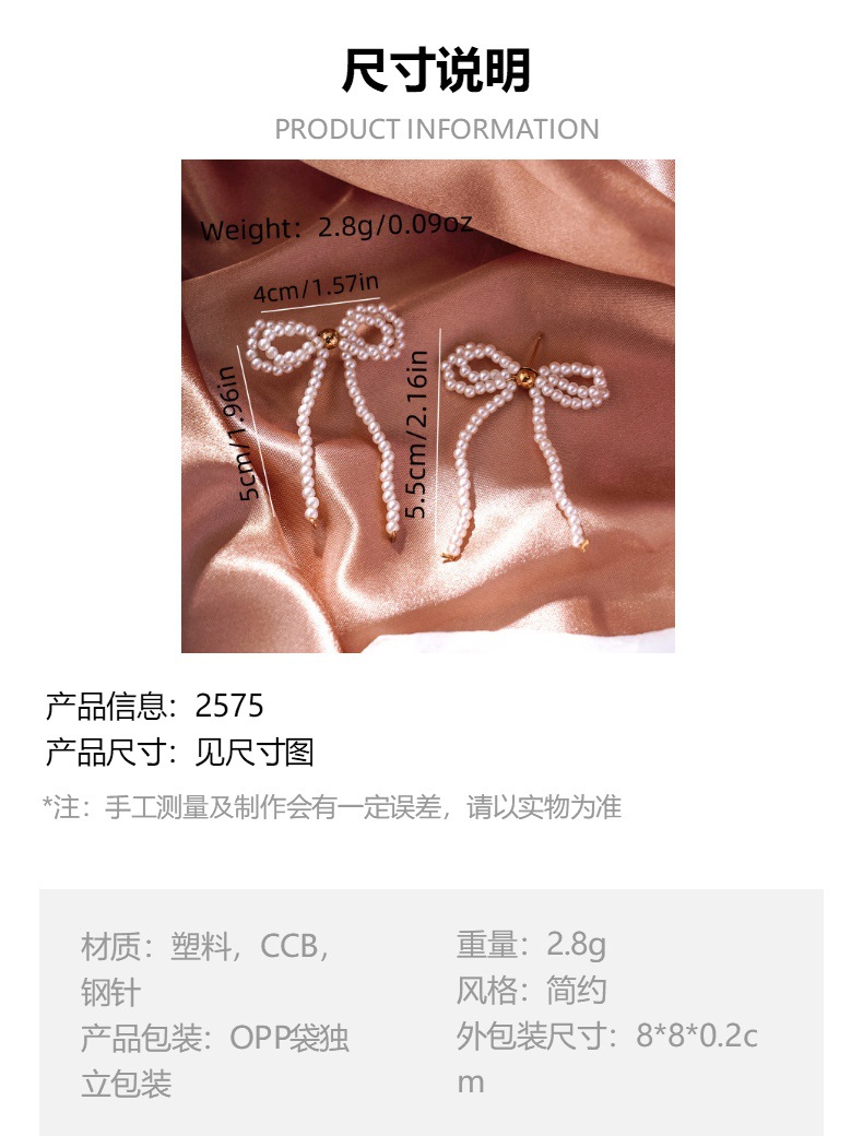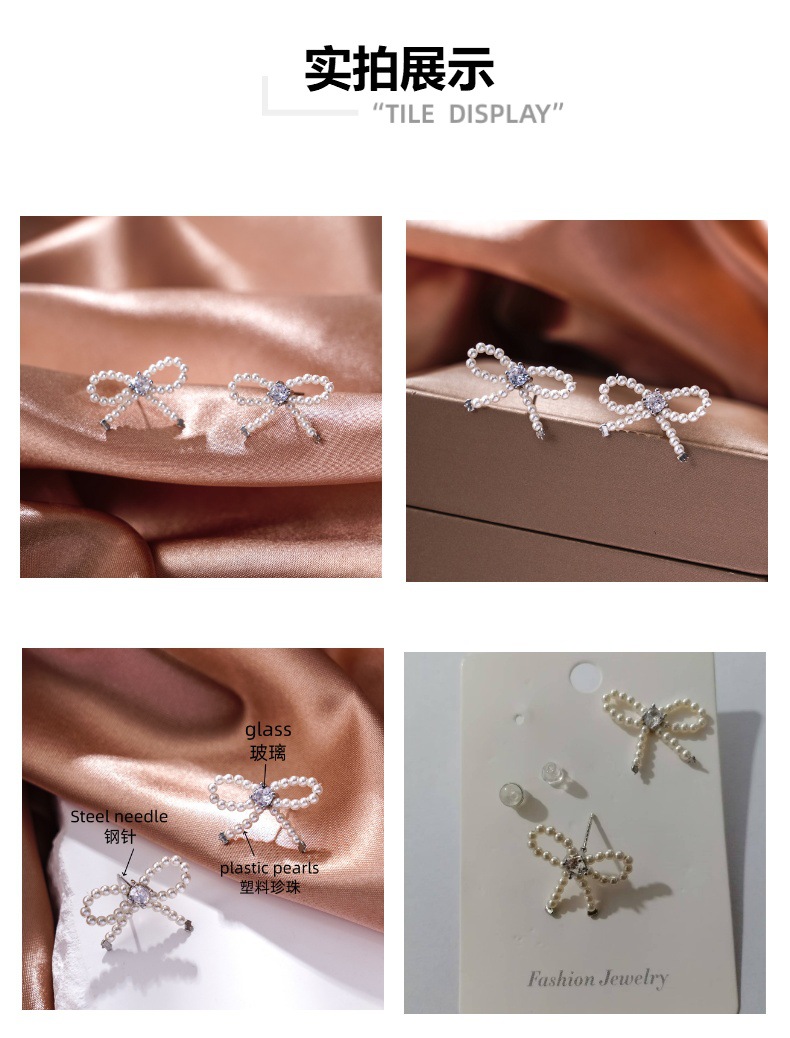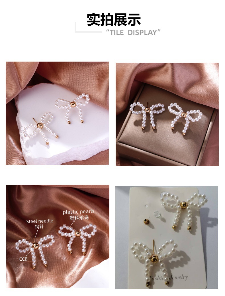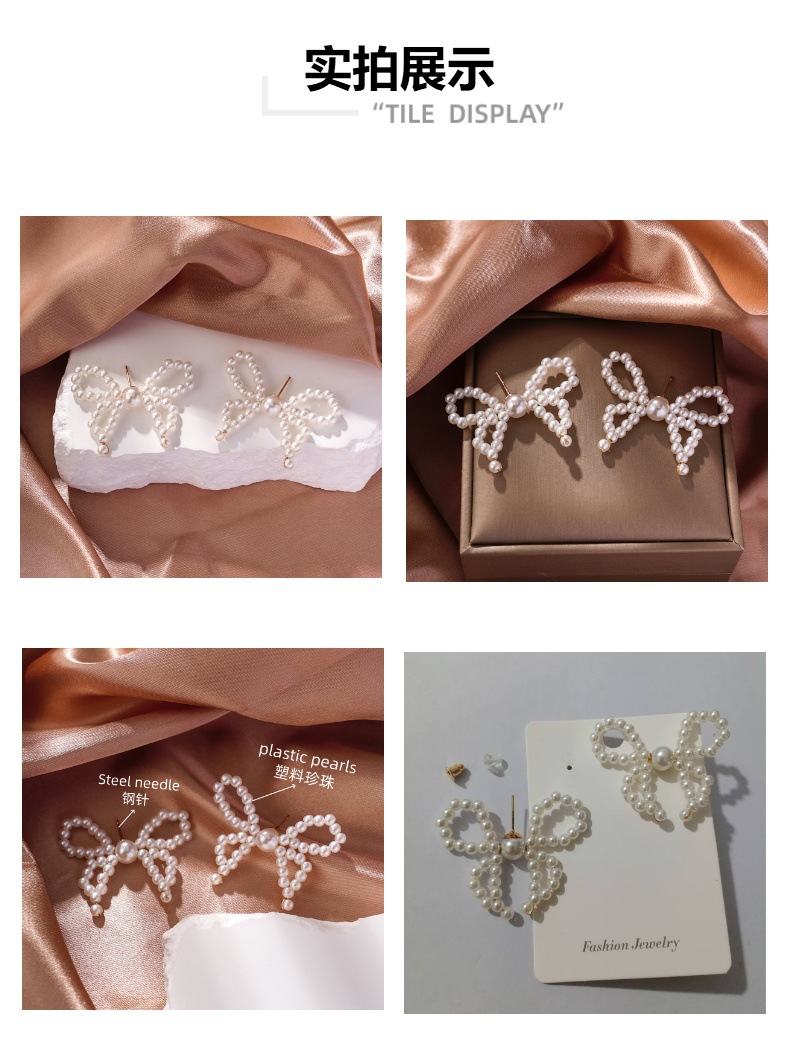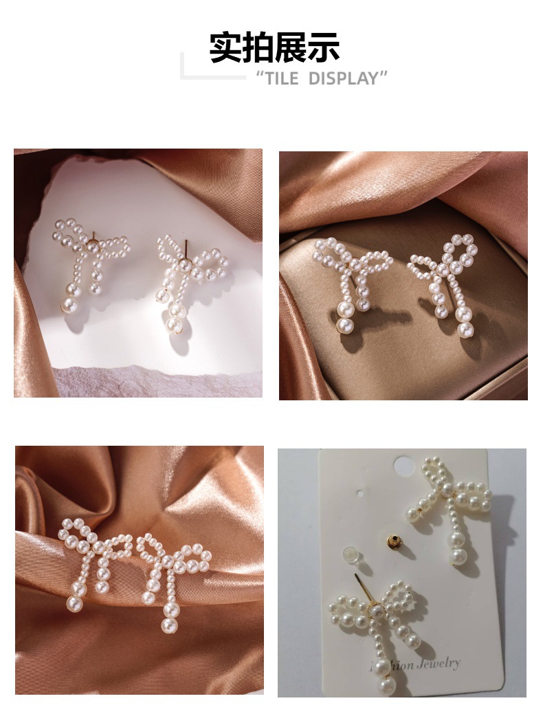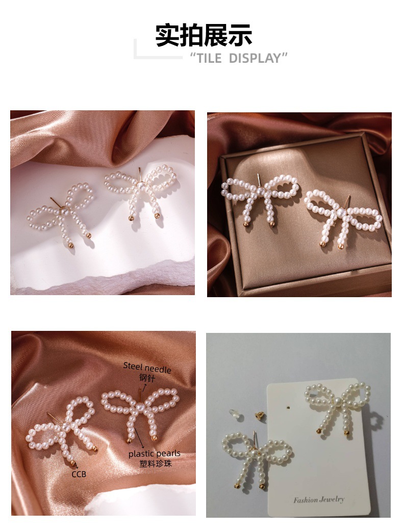 欧米のレトロなins風の蝶結びは真珠のフリンジのピアスの女性のシンプルなイヤリングのbowearingをまねます。