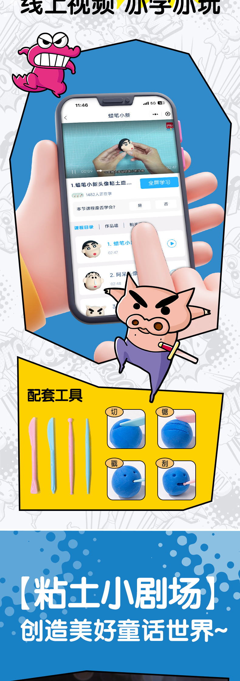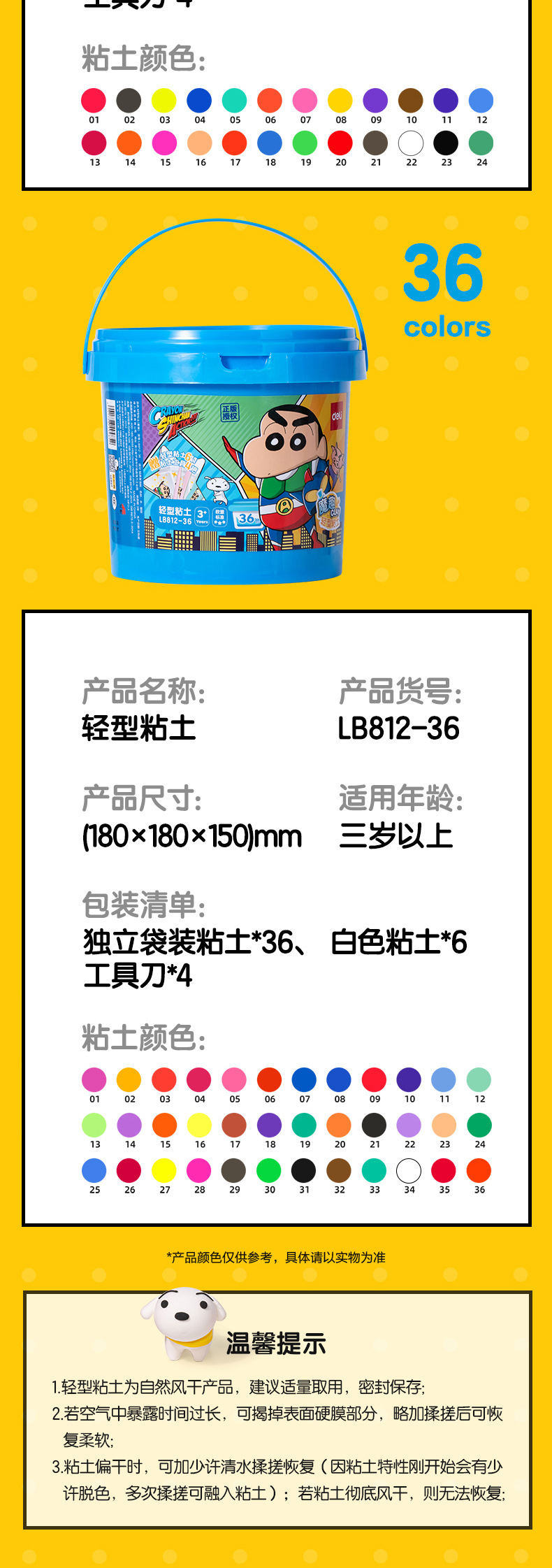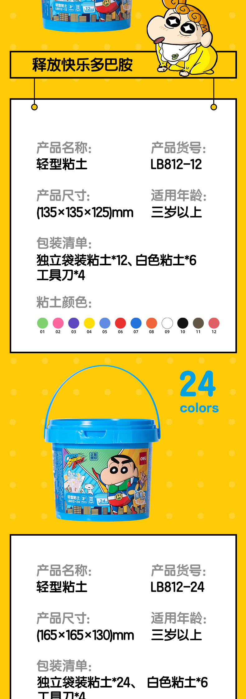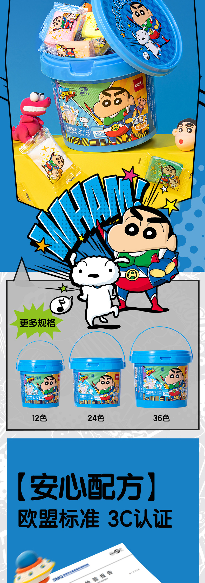 得力LB812クレヨンしんちゃん連名粘土彩泥ゴム泥幼稚園手作り樽詰めdiy玩具