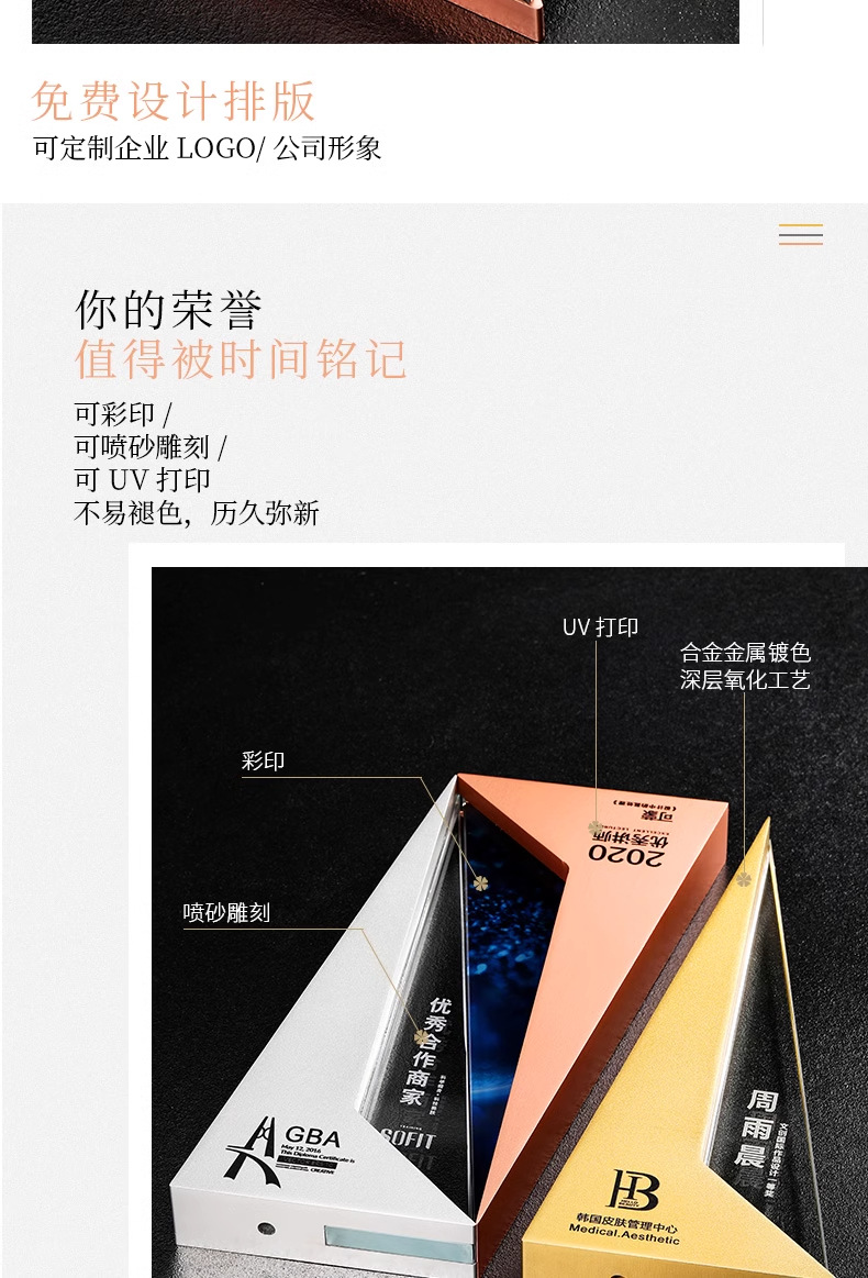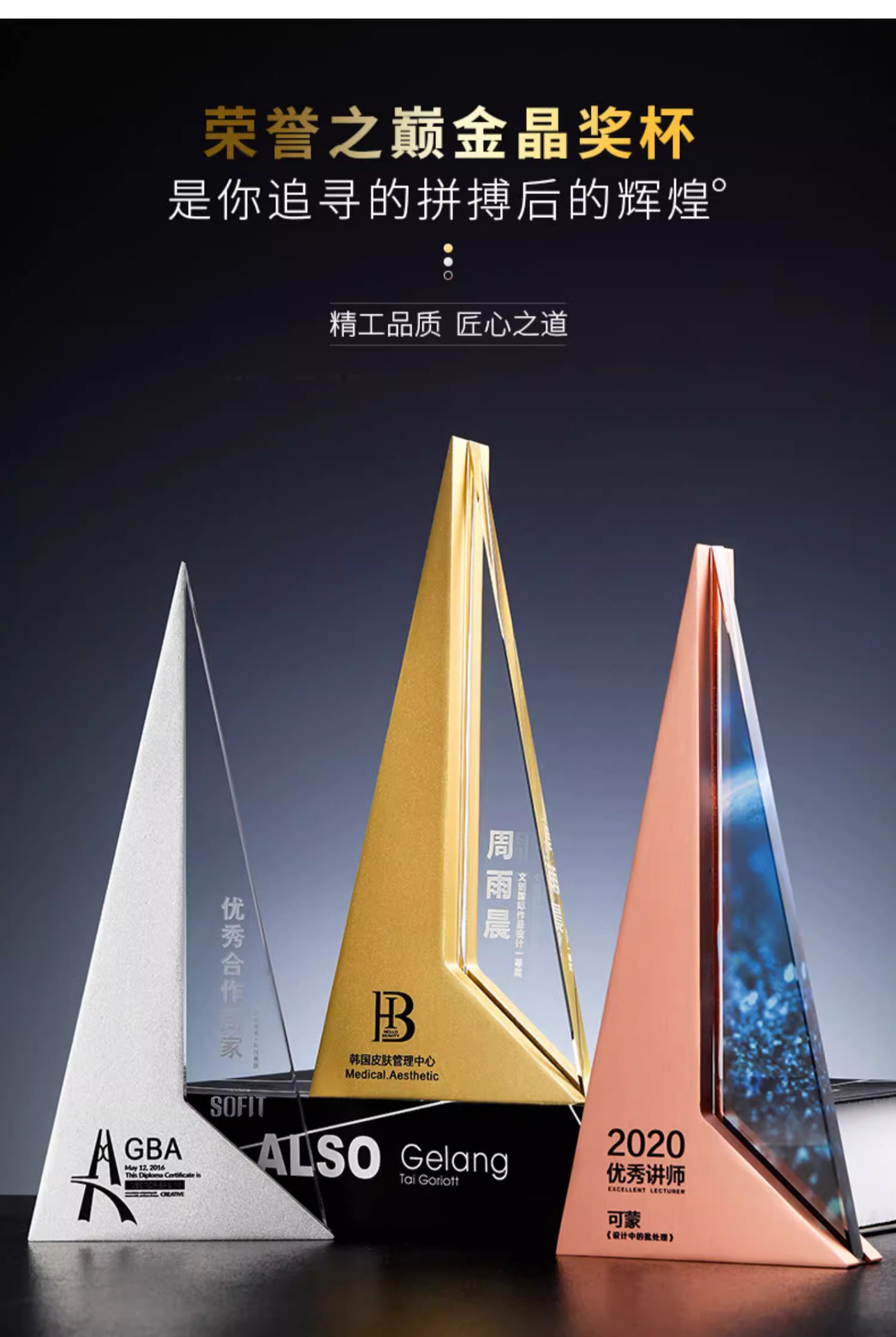 制作企業売上ランキング金属水晶トロフィー優秀社員金銀銅数字8幾何学トロフィー