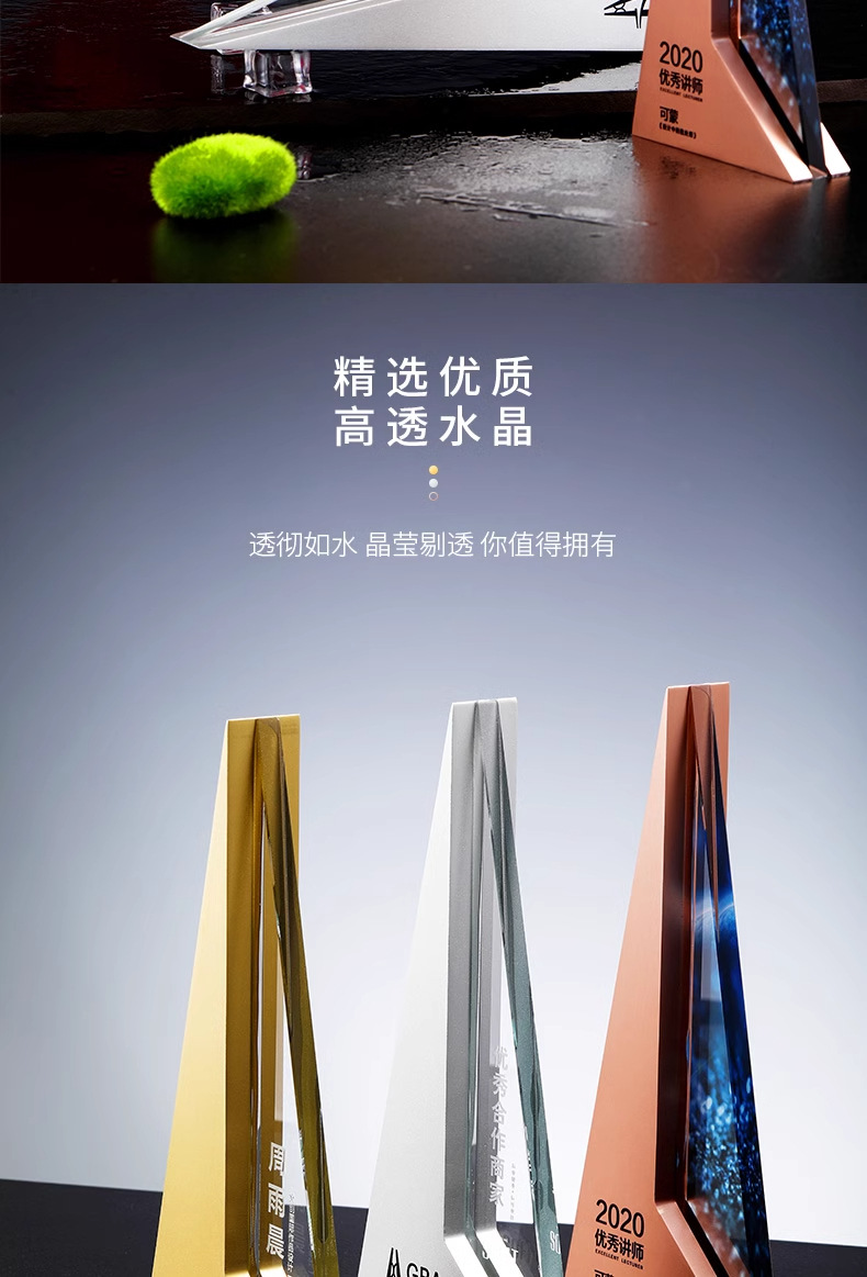 クリエイティブなカラフルなクリスタルトロフィー企業優秀従業員年次総会名誉賞高級退職記念品