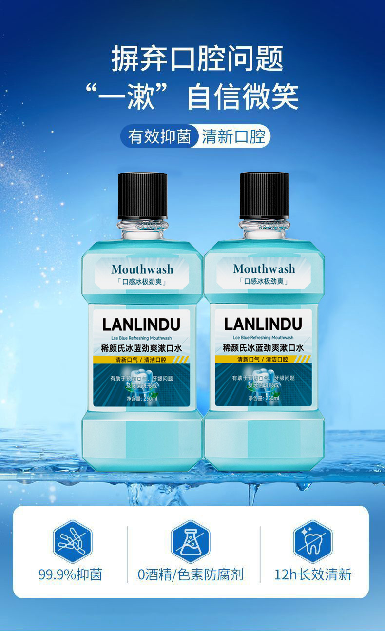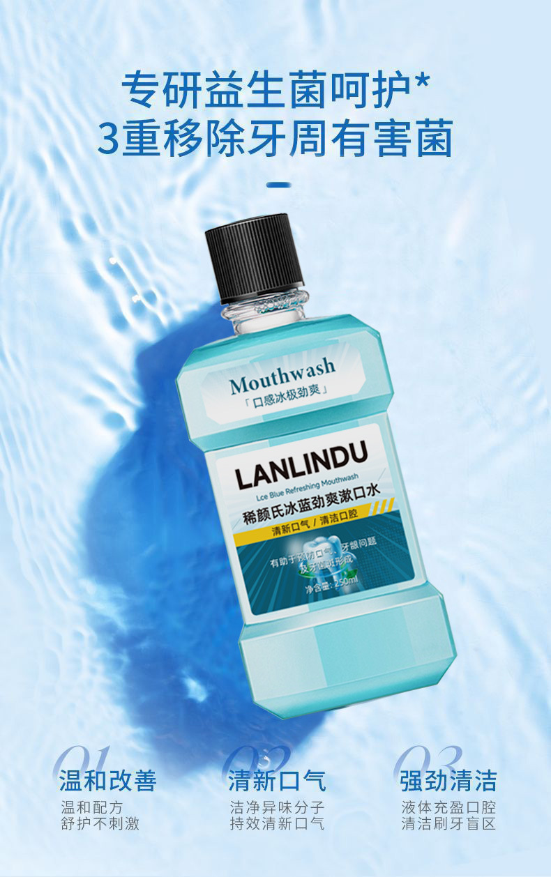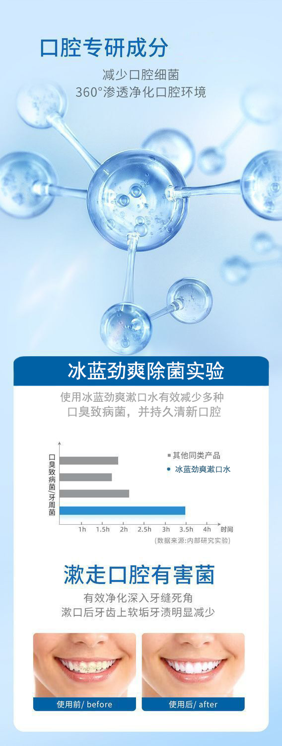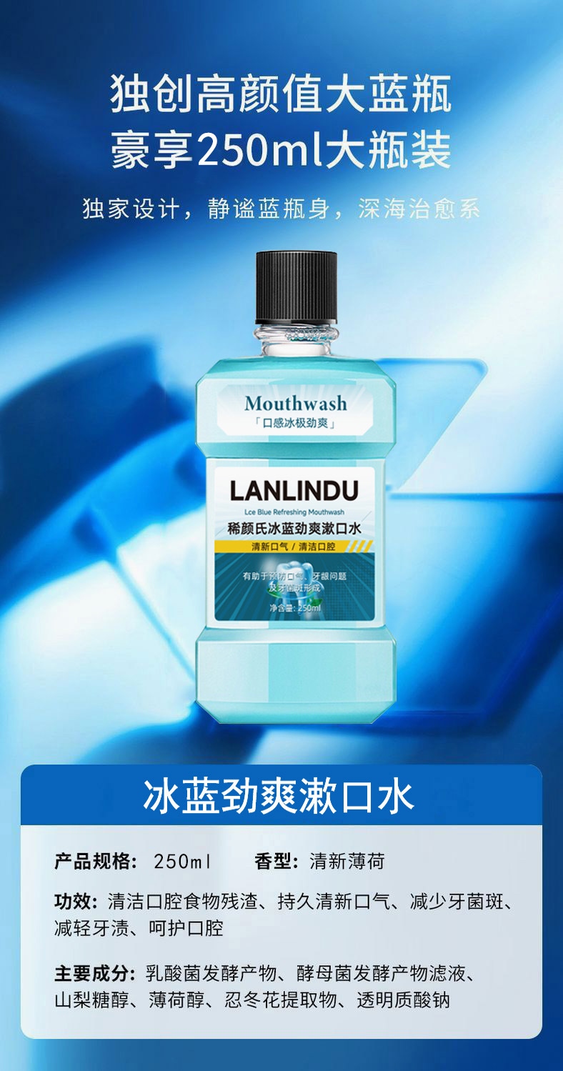 益生菌漱口水口腔护理清新口气持久留香去异味清凉冰蓝薄荷含漱液