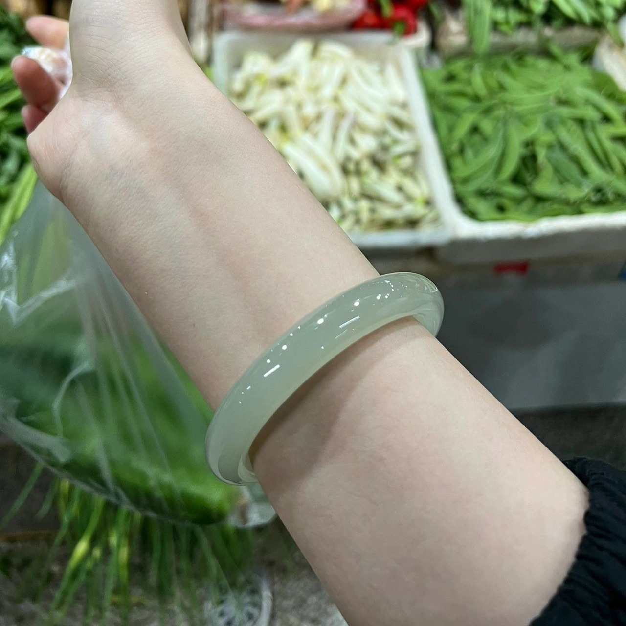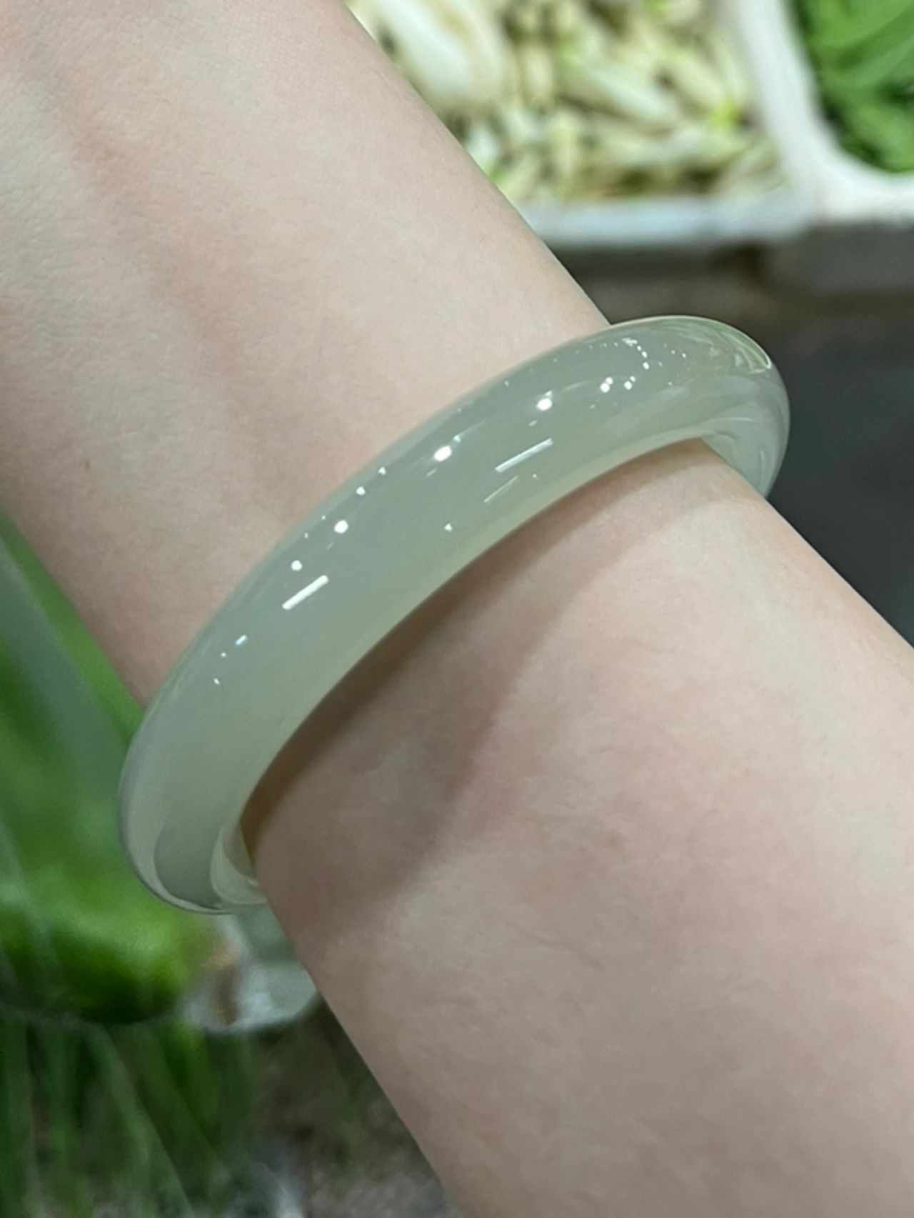 新疆と田玉青白玉平は腕輪の玉髄玉の腕輪のために腕輪の晴水の円の氷を刺して汗の玉を通します。