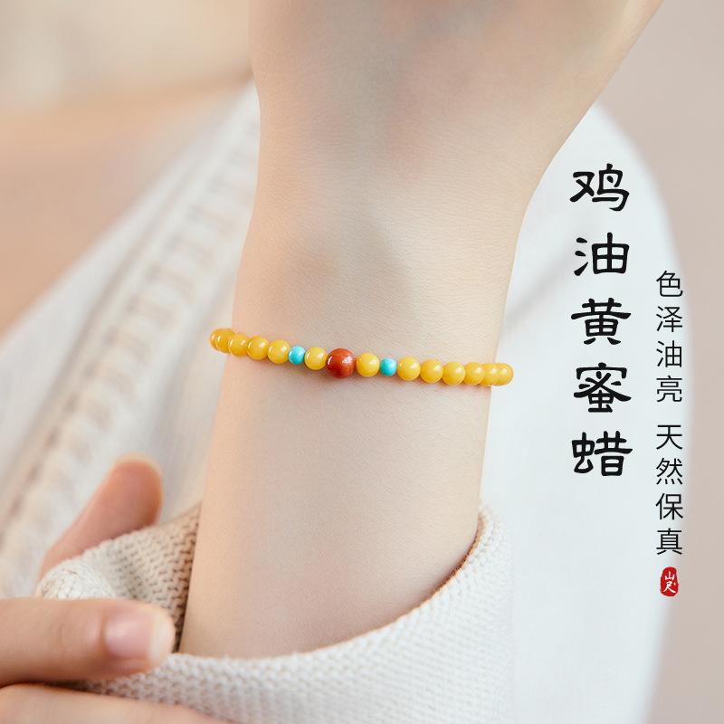 緑松石蜜ろう手串天然黄色琥珀小珠ブレスレット南紅転運珠新中国式国風蜜寧