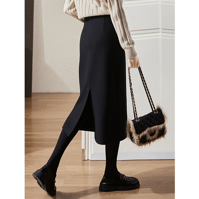 2025秋装显瘦过膝羊毛呢半身裙女包臀裙a字高腰直筒裙打底半裙子