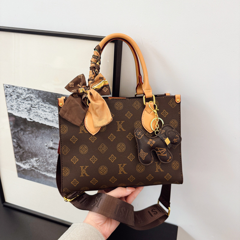 外国貿易2024女性バッグ新欧米レトロプリントハンドバッグ百合大容量カジュアルショルダーバッグ