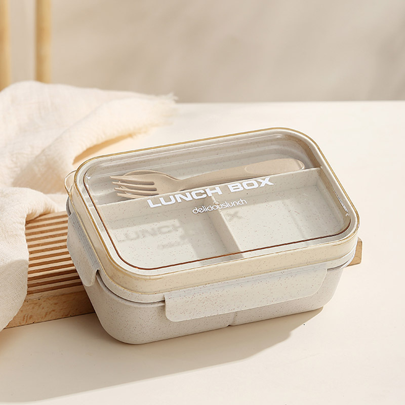 シンプルな分格学生のプラスチックの弁当箱のサラリーマンの小麦わらの弁当箱はマイクロ波ができます。