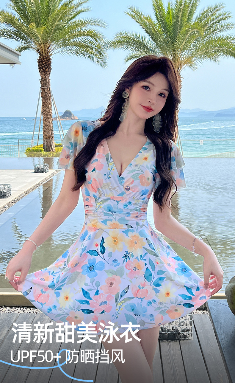 水着女性2025年新型ファッション肉を隠して痩せたワンピース式温泉休暇写真水着