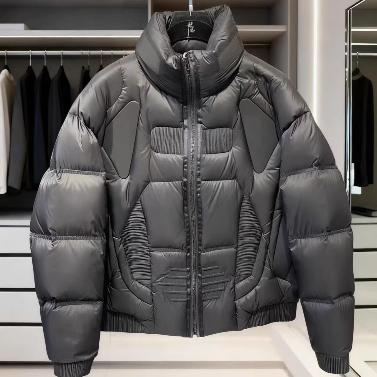 潮流个性大拉链设计羽绒服男2025冬季保暖立领白鸭绒羽绒御寒外套
