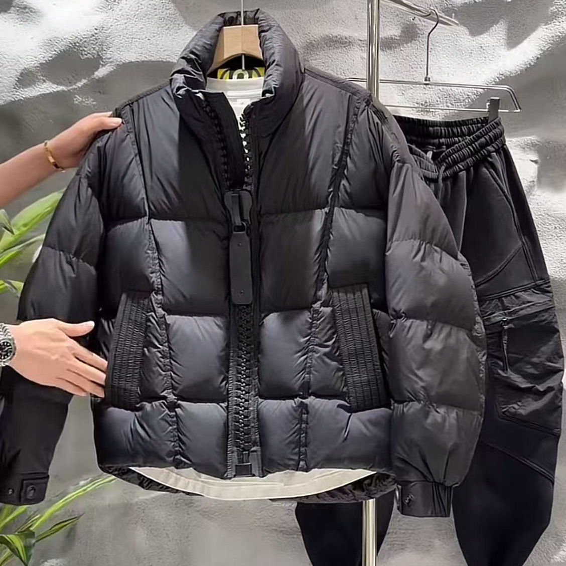 2025秋冬季新款潮流短款羽绒服男黑色立领拉链保暖加厚外套冬装