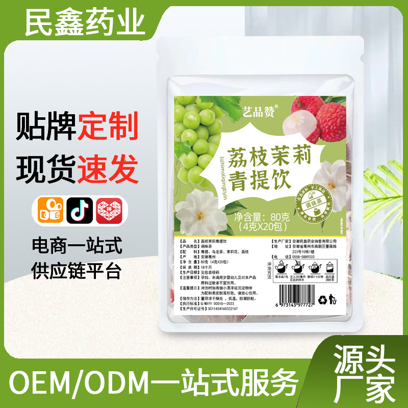 Douyin の人気のライチ ジャスミン グリーン ティー ドリンク サマー クール ドリンク トライアングル ティー バッグ ソース メーカー直接供給は代行可能です