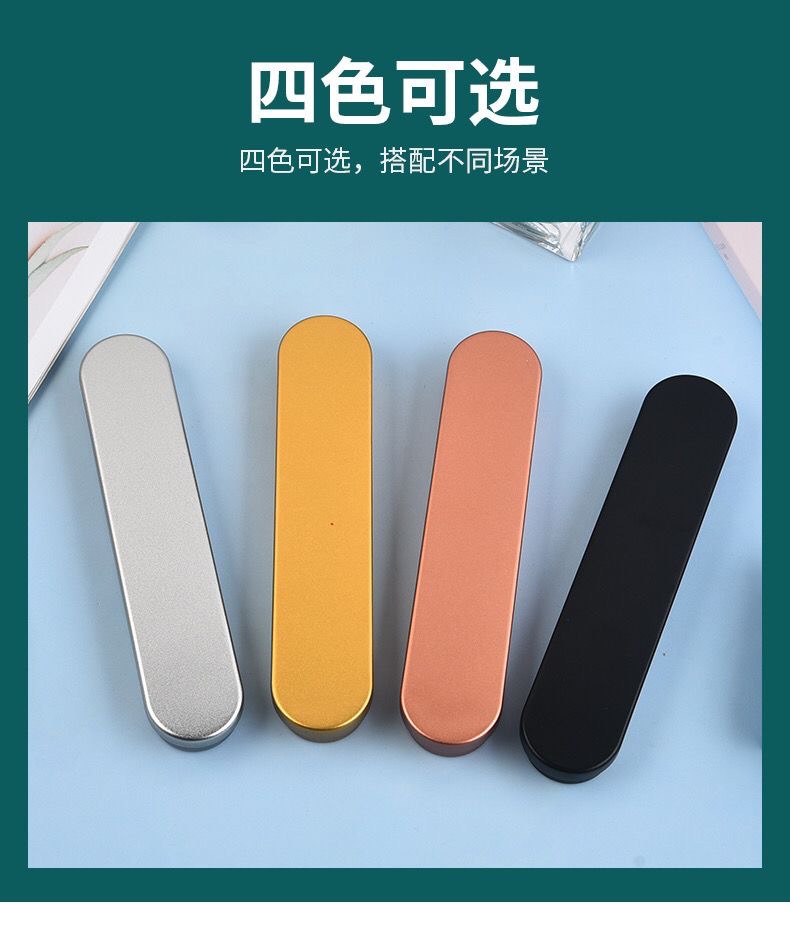 現物ブリキケースカバー付き金属ペンケースレザーロゴブラックシルバーペンケースギフトペンケース卸売り