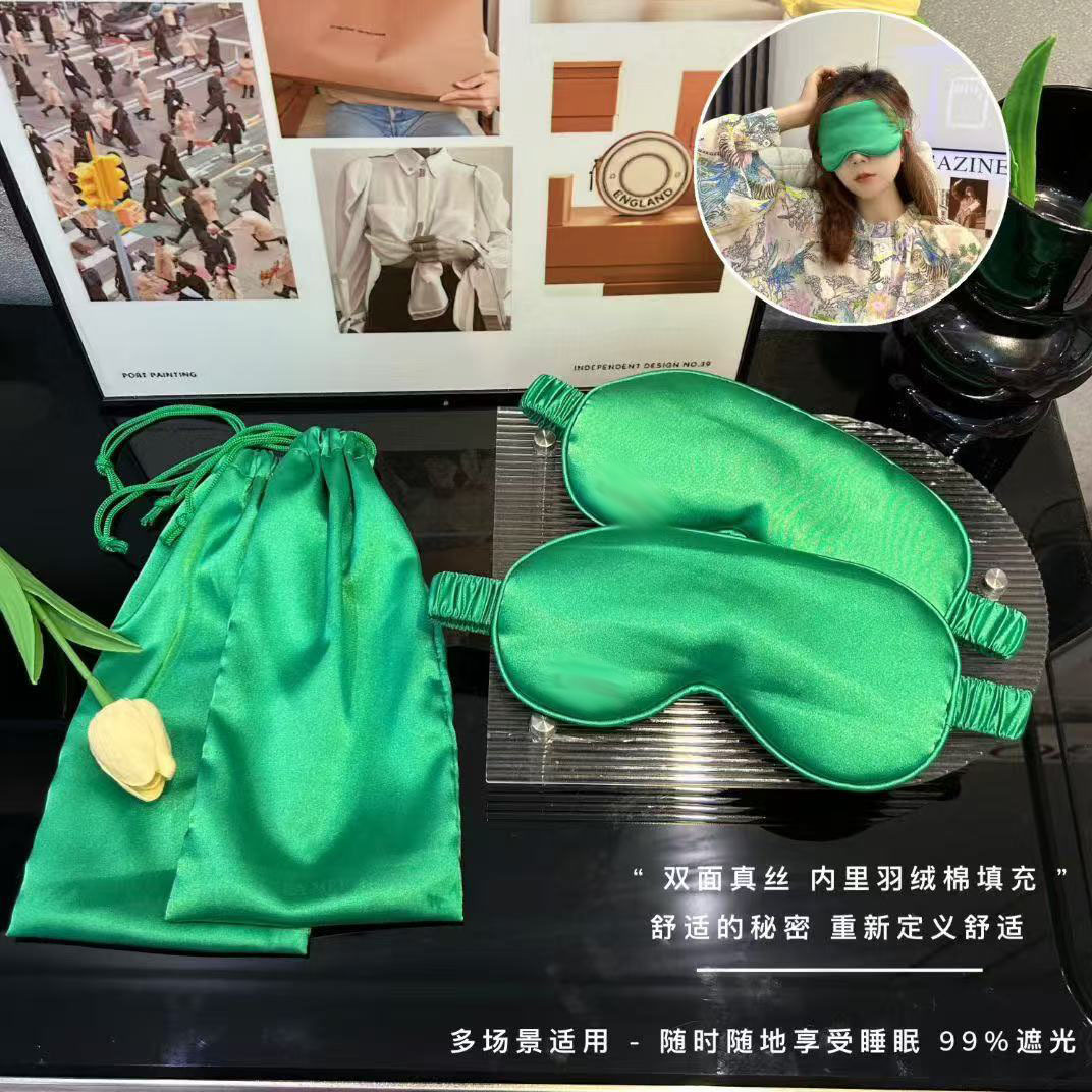 海蓝复古绿真丝睡眠眼罩100桑蚕丝遮光护眼罩不压眼带收纳袋