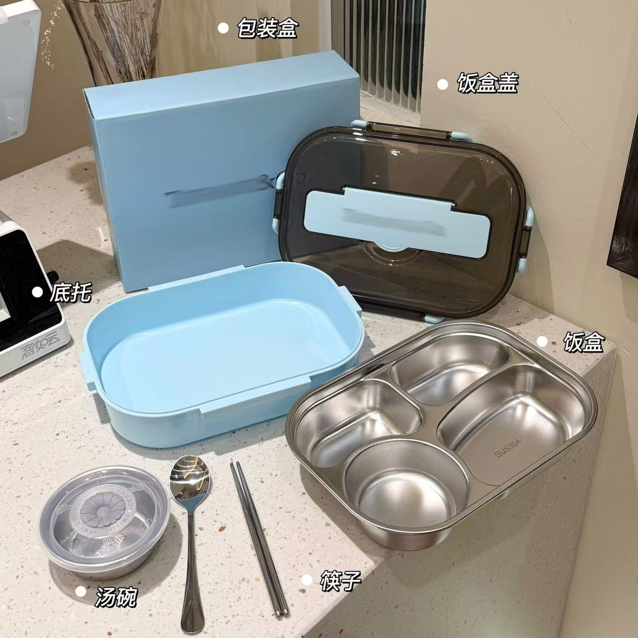 304不锈钢保温饭盒汤碗学生开学儿童便当盒食堂便携分格餐盒套装