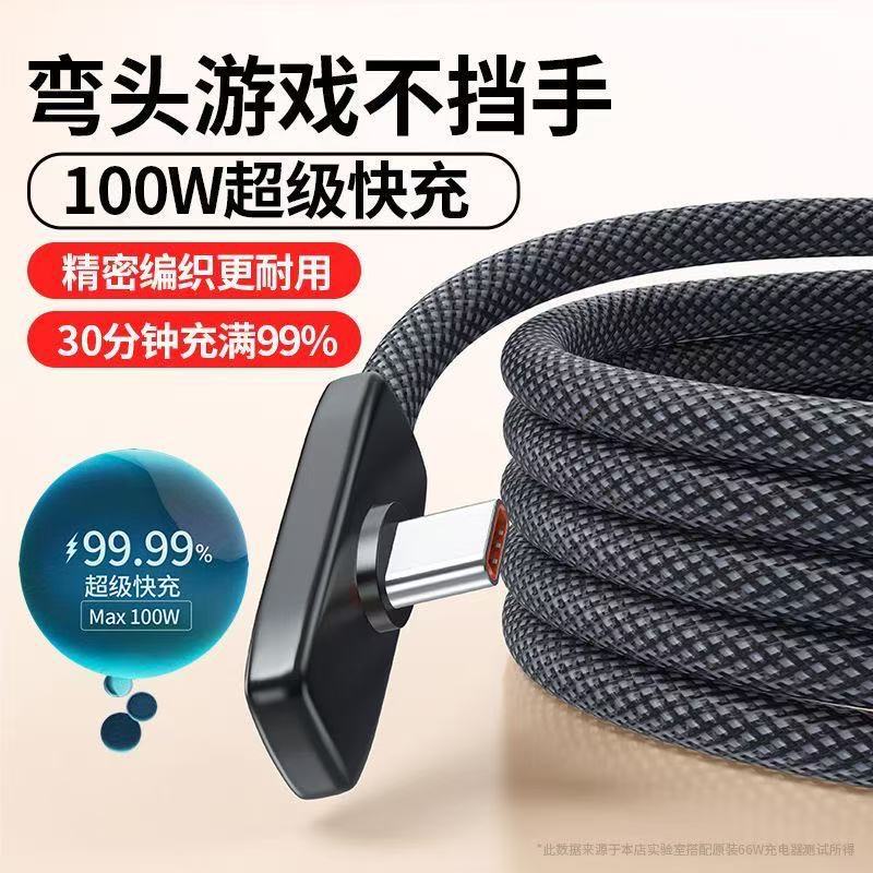100W弯头编织快充数据线6A适用安卓华为荣耀Type-C接口手机闪充线