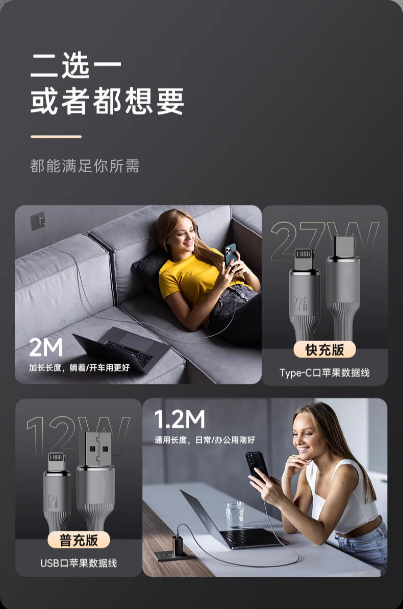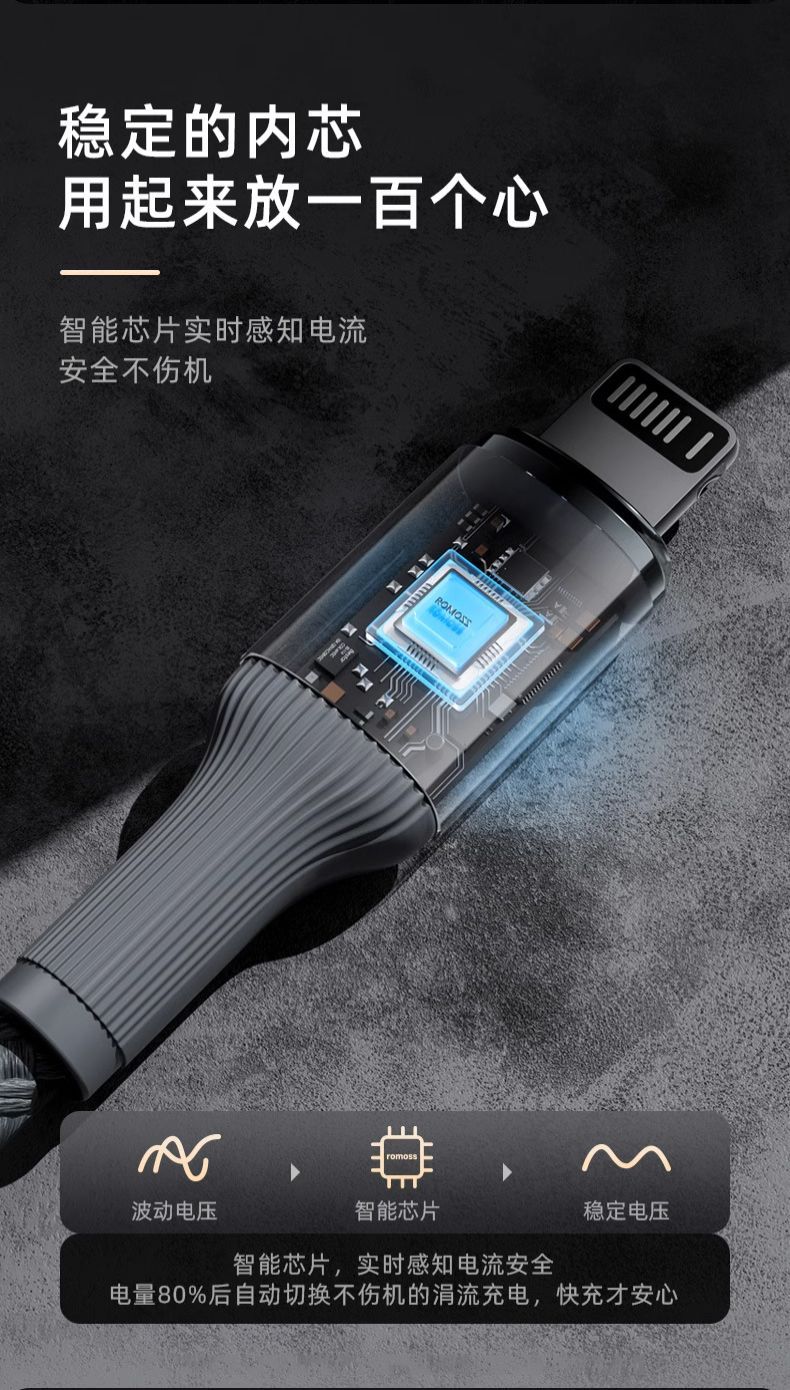 罗马仕钨金100W快充数据线PD27W 适用于苹果华为TYPE-C车载充电线