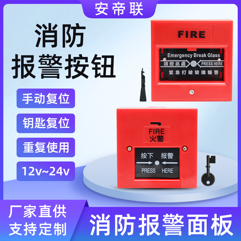 火災消火栓アラームボタンパネル手動キーリセットクロスボーダー緑赤正方形工業用商用ホーム