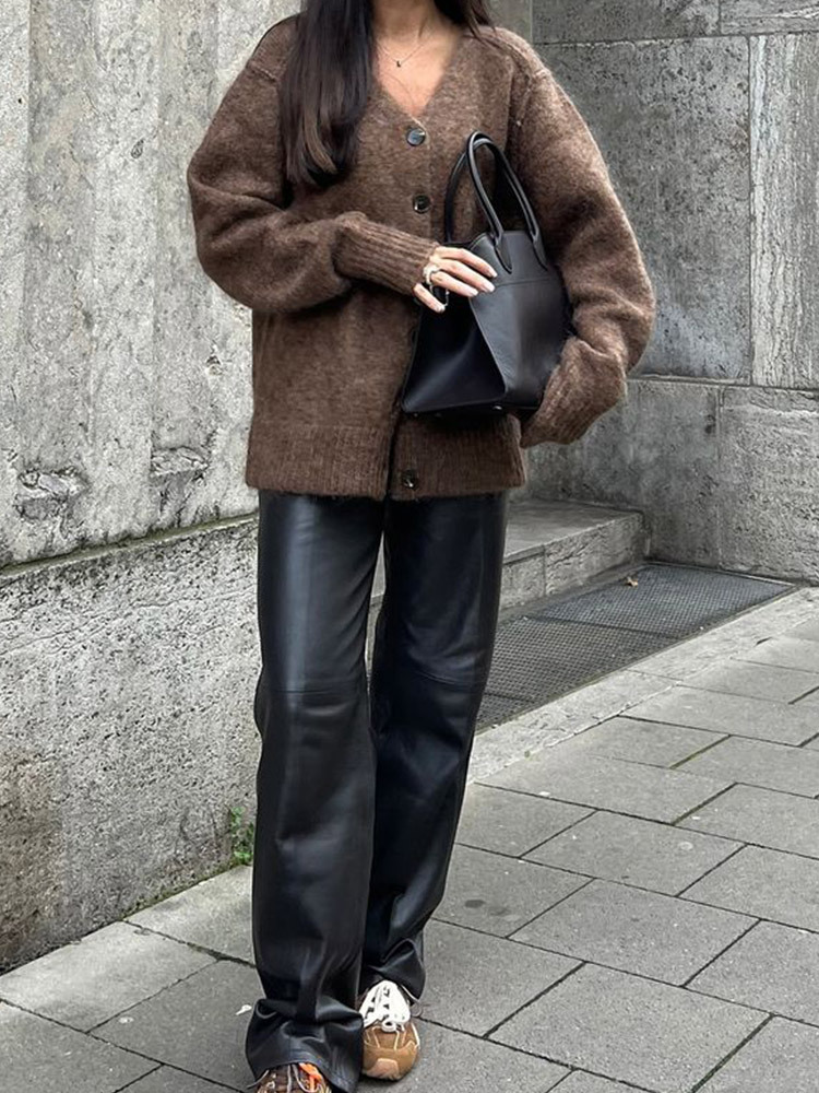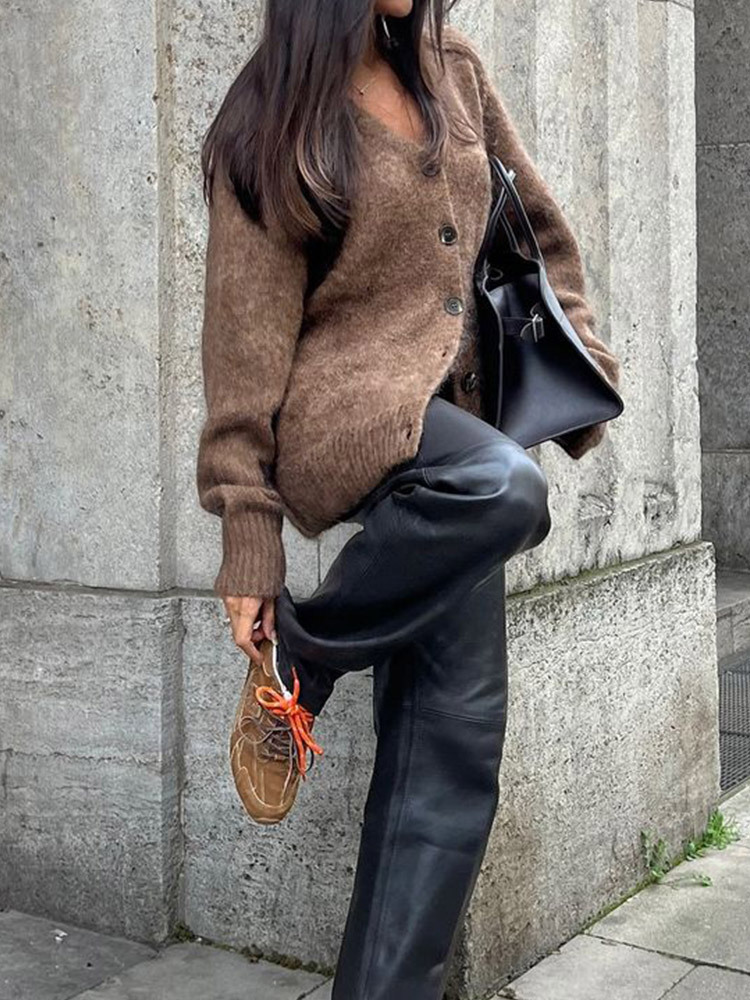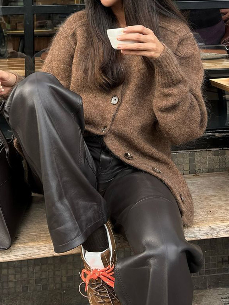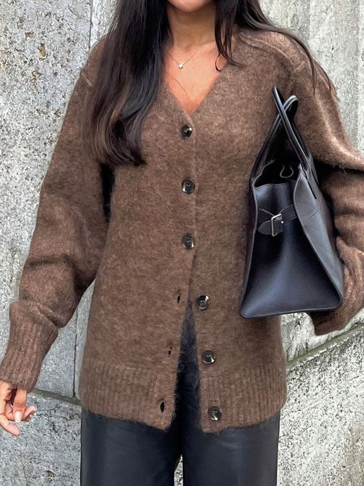 2024国境を越えた欧米の馬海毛カーディガンコート秋冬ファッションvネックレトロで怠惰なセーターコート