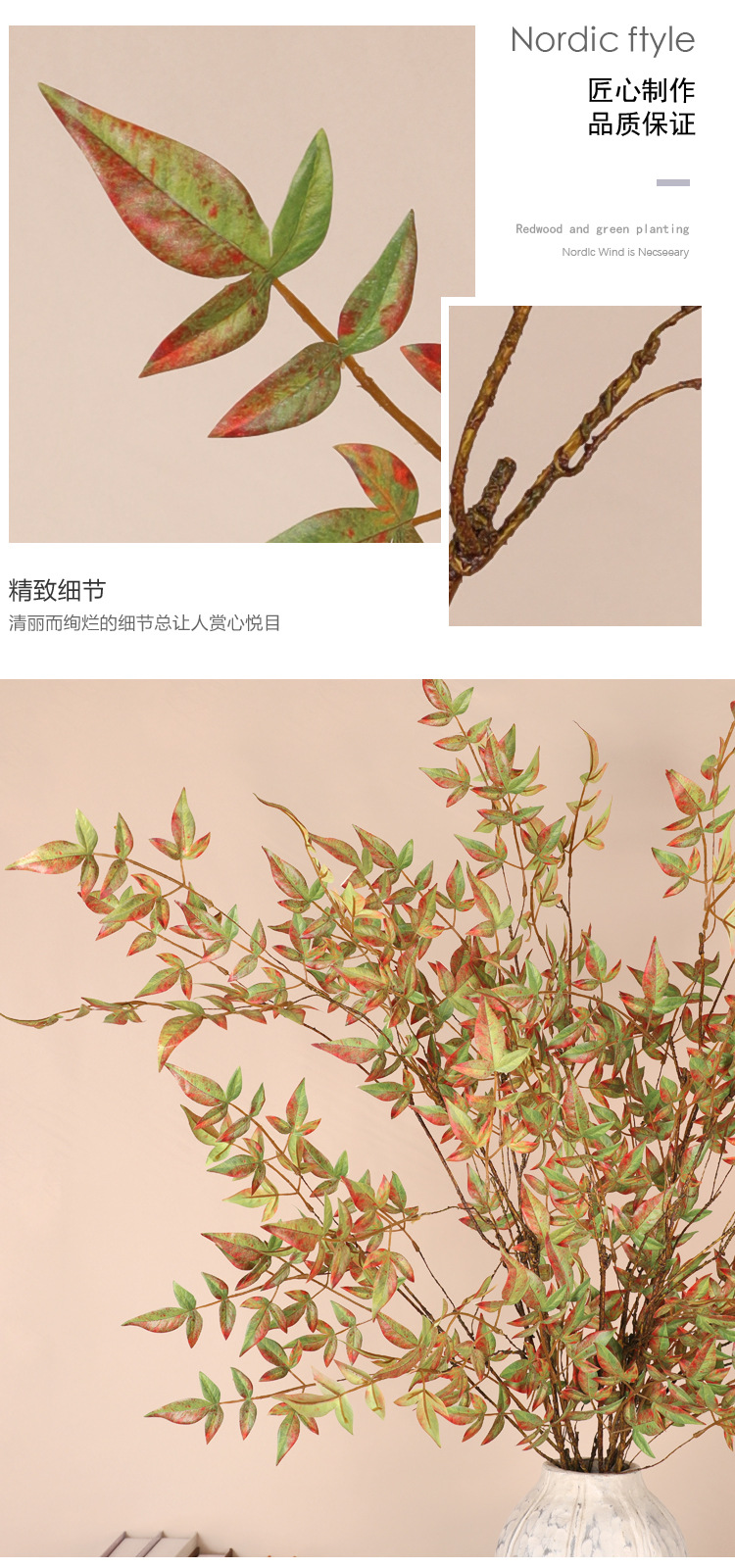 【新品】斉浩花芸125CM模擬南天竹新年秋客間装飾南天竺置物