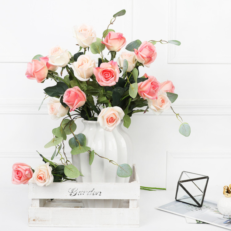 【ベストセラー】齐浩花艺80CM3頭造花 フランス風バラ INS風 室内外装飾用造花