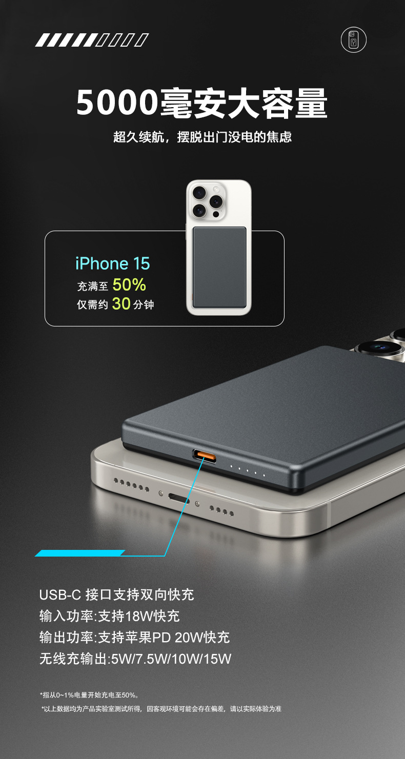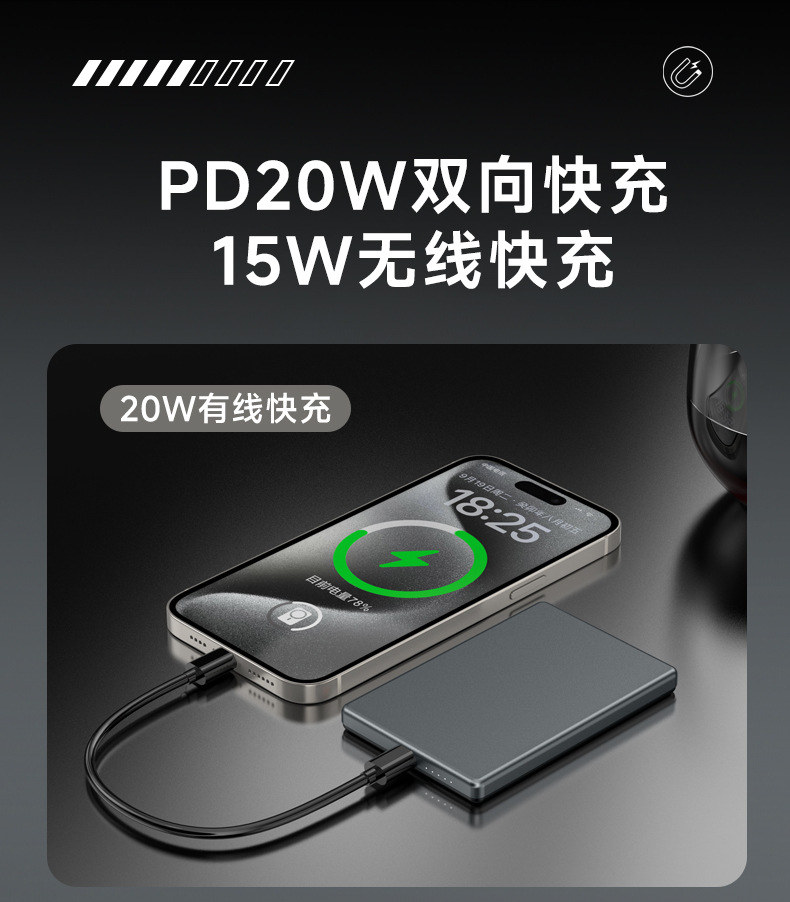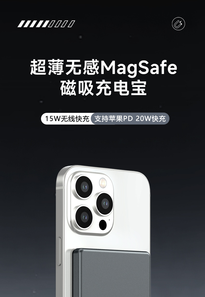 【产品功能】:磁吸15W无线充,PD20W快充,超薄9.5mm,大IC保护板,软件板