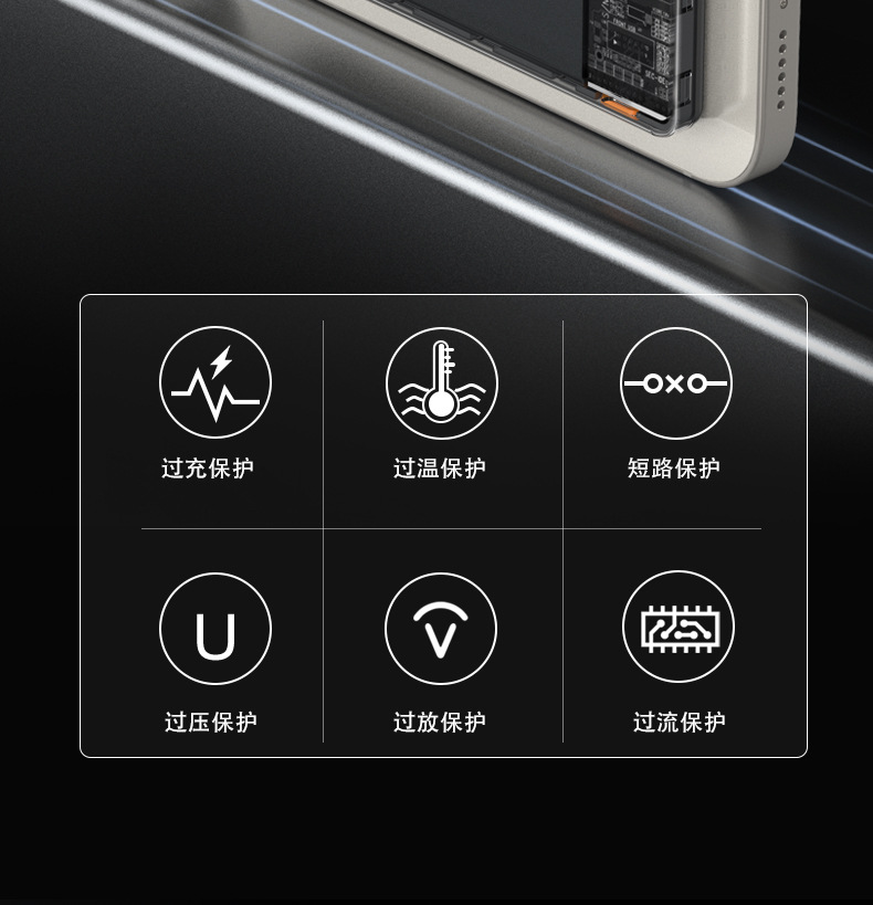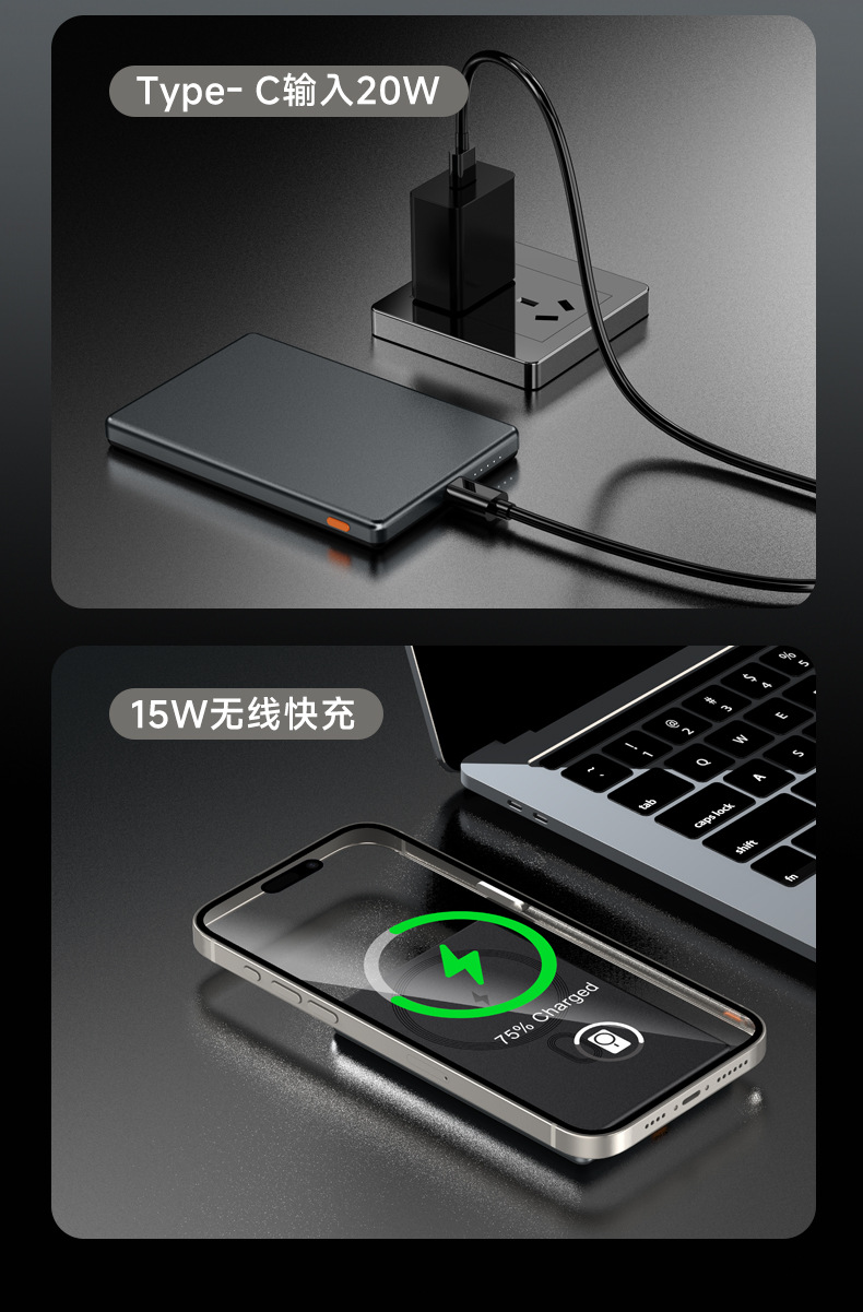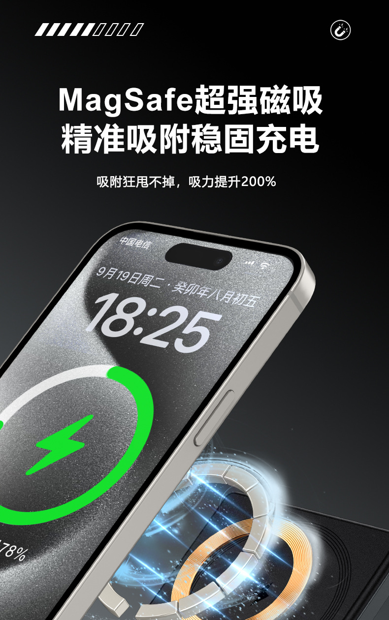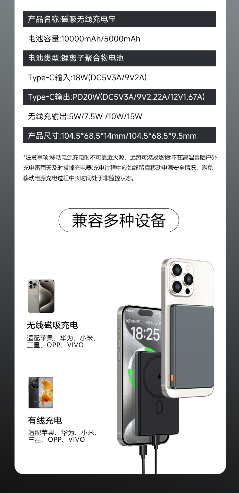 【产品功能】:磁吸15W无线充,PD20W快充,超薄9.5mm,大IC保护板,软件板