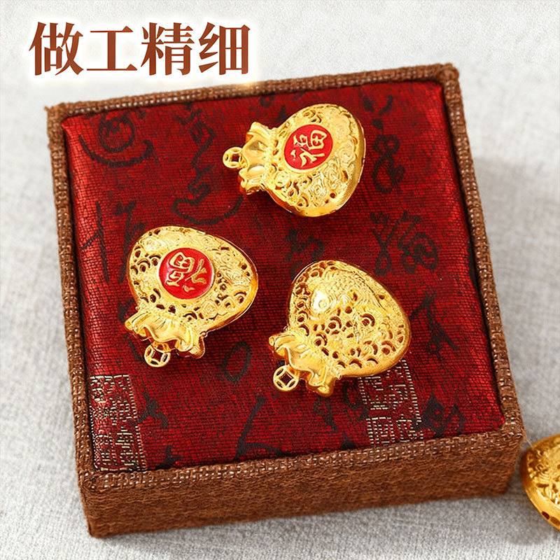 古代の金色の祝福の小さなマネーバッグキーホルダーペンダントネックレスアクセサリー色保持電気メッキ合金中空福袋