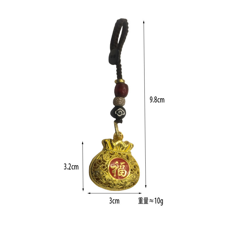 合金平安果実+祥雲ロープ,合金ピースフルーツ+赤と青のビーズロープ,金色の中空お金袋+縁起の良い雲縄キーホルダー,金中空福袋【紐なし】,合金平安果実 [ストラップなし]