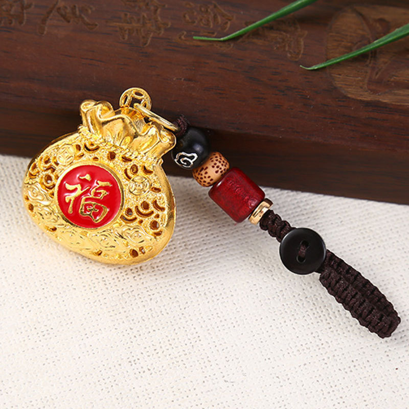 メーカー直販国潮新中国式福字銭袋キーホルダーペンダントネックレスペンダント合金透かし彫り福袋ペンダント