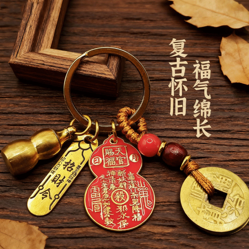 聚财祈福钥匙扣 财库树五帝钱葫芦招财令 招财纳福财库牌随身好物