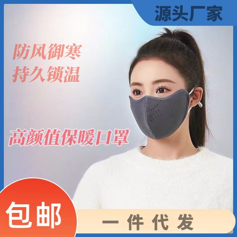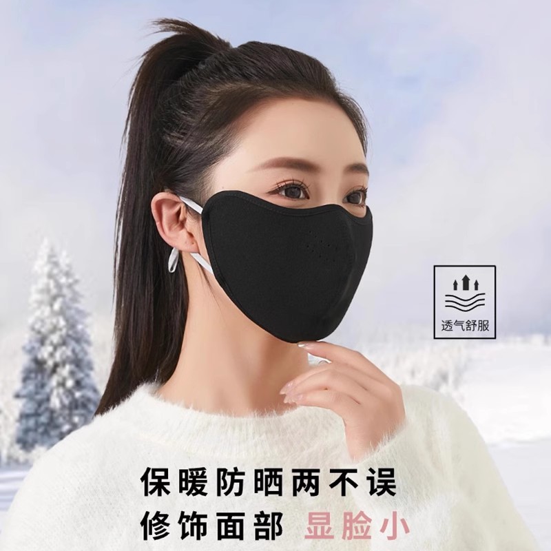 初秋の新型両面徳絨毛保温マスク女性冬の高颜値防風防寒通気日焼け止めファッションマスク