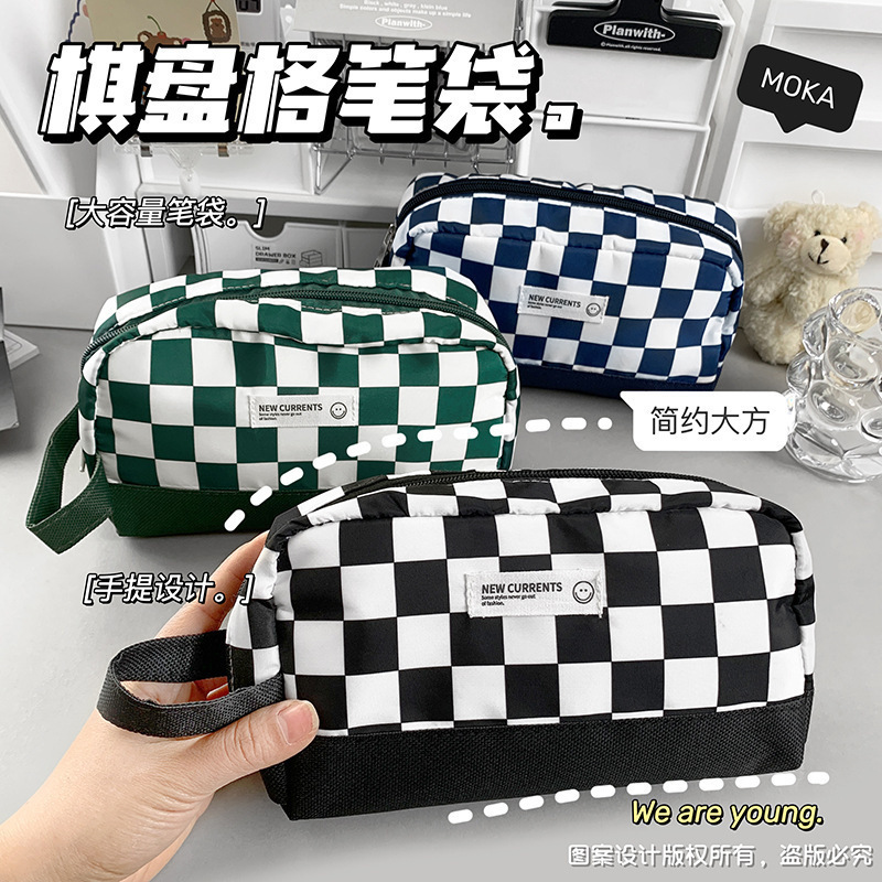 棋盤格筆袋高颜値文房具収納袋学生多層大容量汚れに強い中性筆収納ケース卸売り
