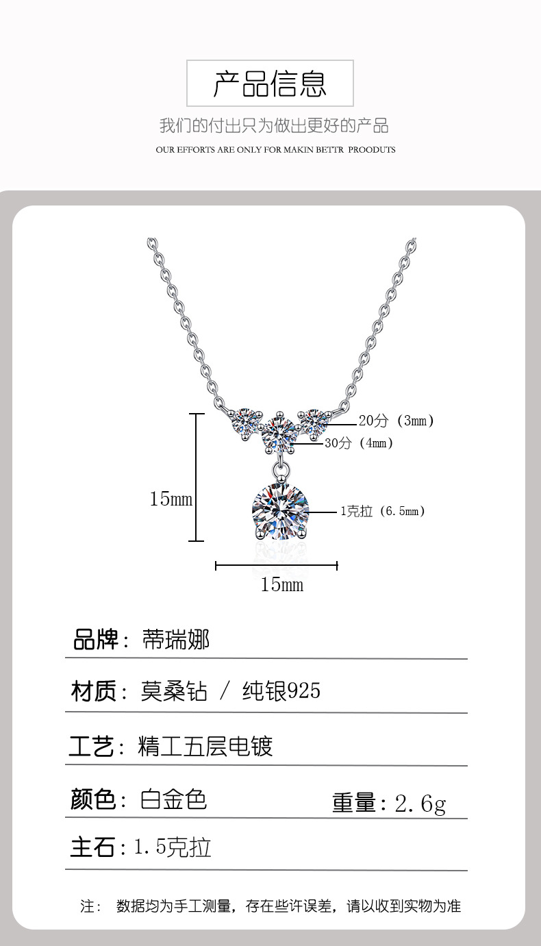 クロスボーダーs 925純銀ネックレス莫桑石ネックレス女性シンプル流蘇軽豪華1.5カラットD色莫桑石ネックレス