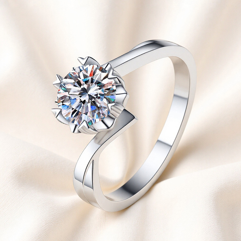 S925純銀リング 女性用 ツイストアーム スノーフレーク 六爪 クラッシュダイヤモンド クローズドタイプ 婚約指輪 高級ホワイトゴールドリング