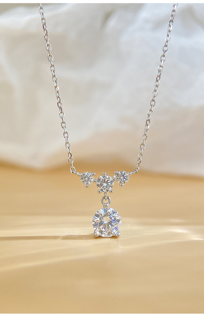 莫桑ダイヤモンドネックレスS925純銀クラシック六爪単ドリルペンダントプラチナ鎖骨鎖シンプル高級感卸売り