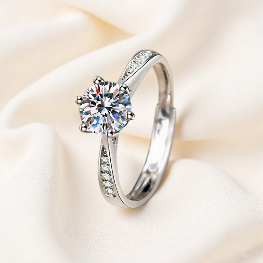 莫桑石925純銀の指輪の女性の震え音の同項の周家の六爪の経典の王冠のプロポーズの贈り物のメーカーは直接供給します。