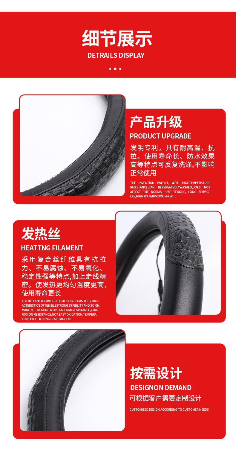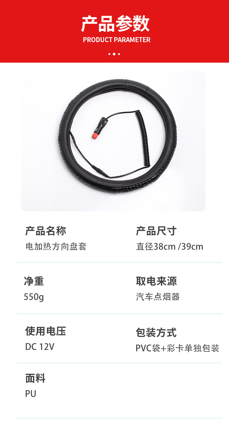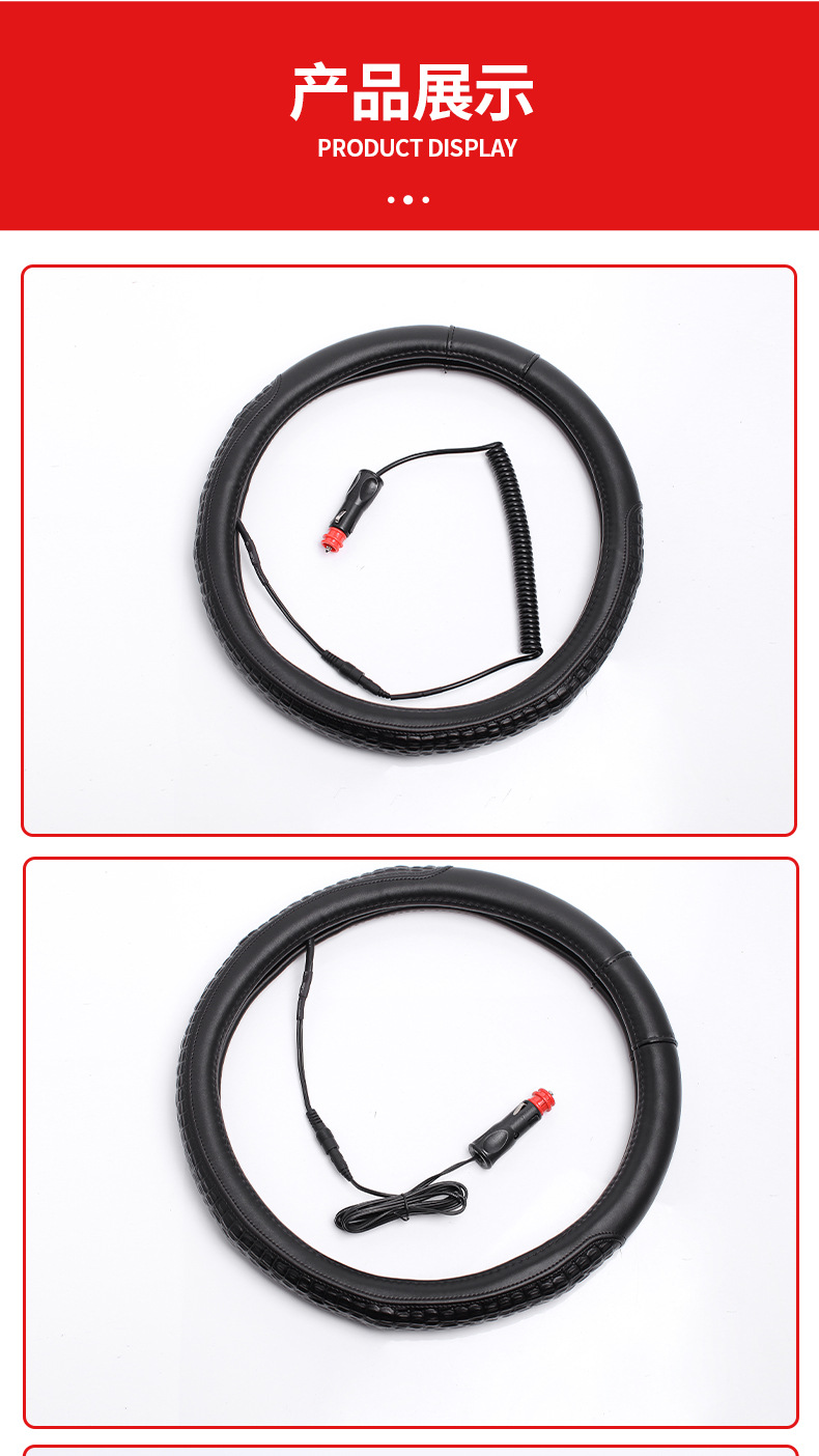 糸縫模様電気加熱ハンドルカバー浙江メーカー冬保温車ハンドルカバーシガレットプラグ発熱