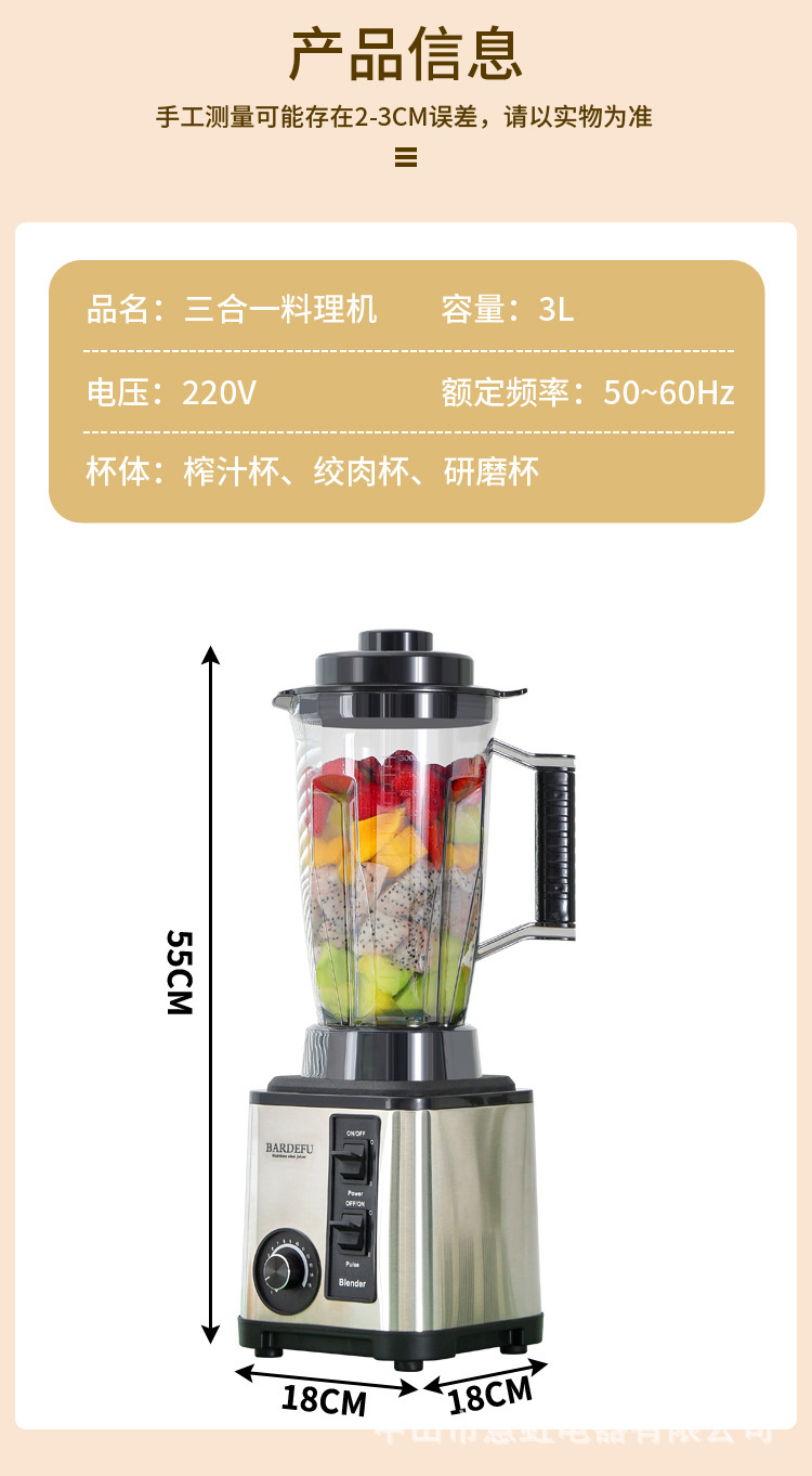 破壁機多機能ステンレス大容量三合一搾汁攪拌研磨砂氷機家庭用blender