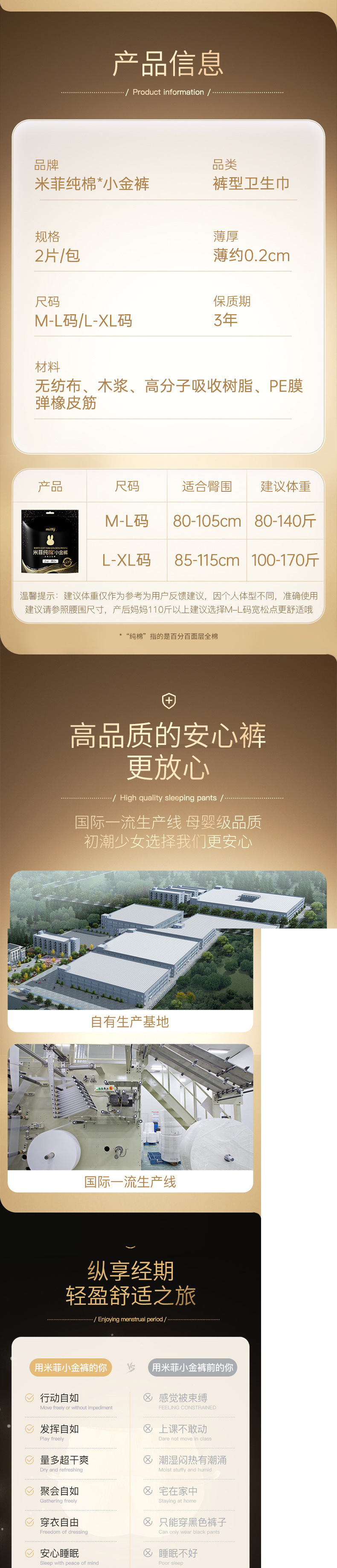 米菲のハイエンドの純綿の安眠のズボンの安心のズボンの敏感な肌の夜は大きい吸う量の高弾でズボンの型の生理用ナプキンを延長します。