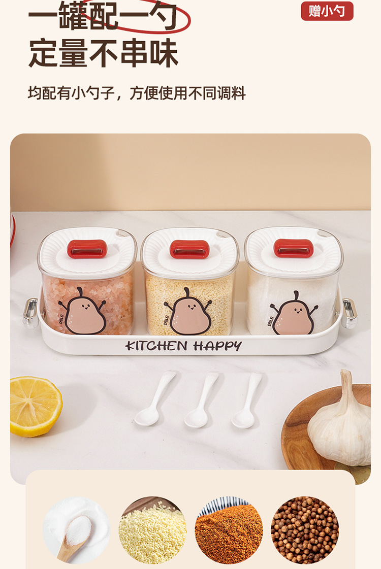 調味料箱一体多格家庭用キッチン高級プラスチック調味料缶多機能収納箱セット塩缶