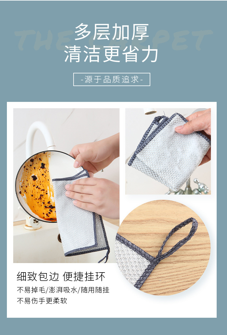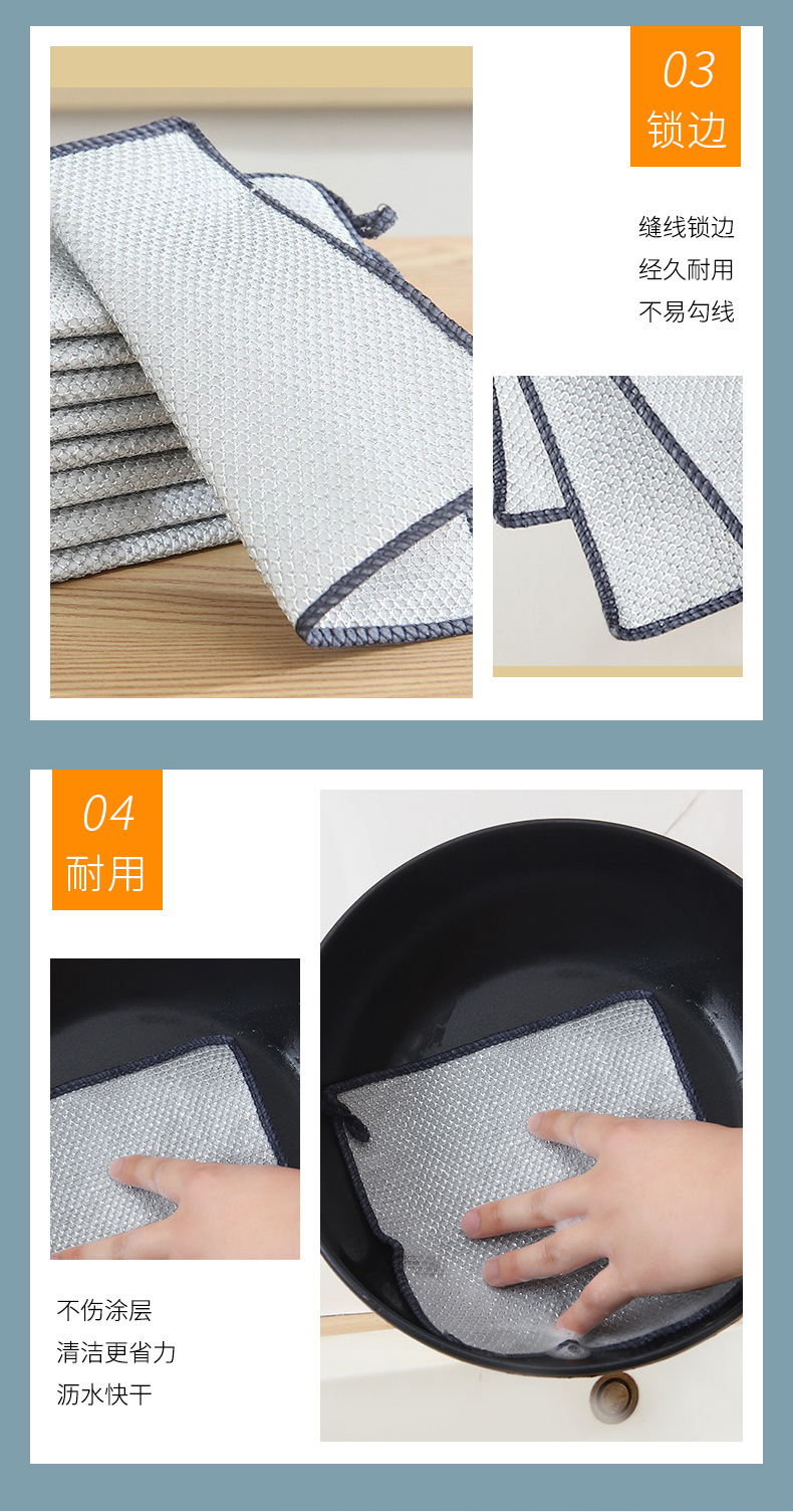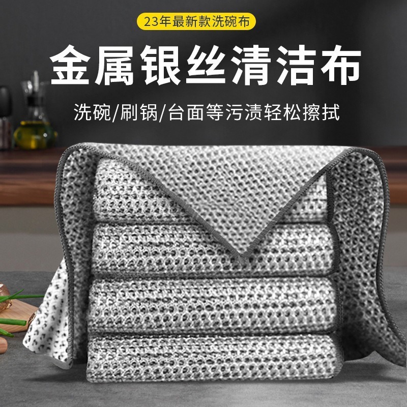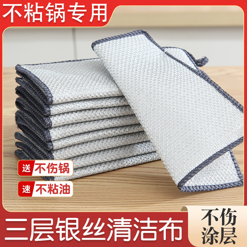 多仕様の三層銀線クリーニングクロス、こびりつきにくい油ふきん、食器用タオル、鍋やコンロの洗浄、スケール除去、スチールボールの代替品